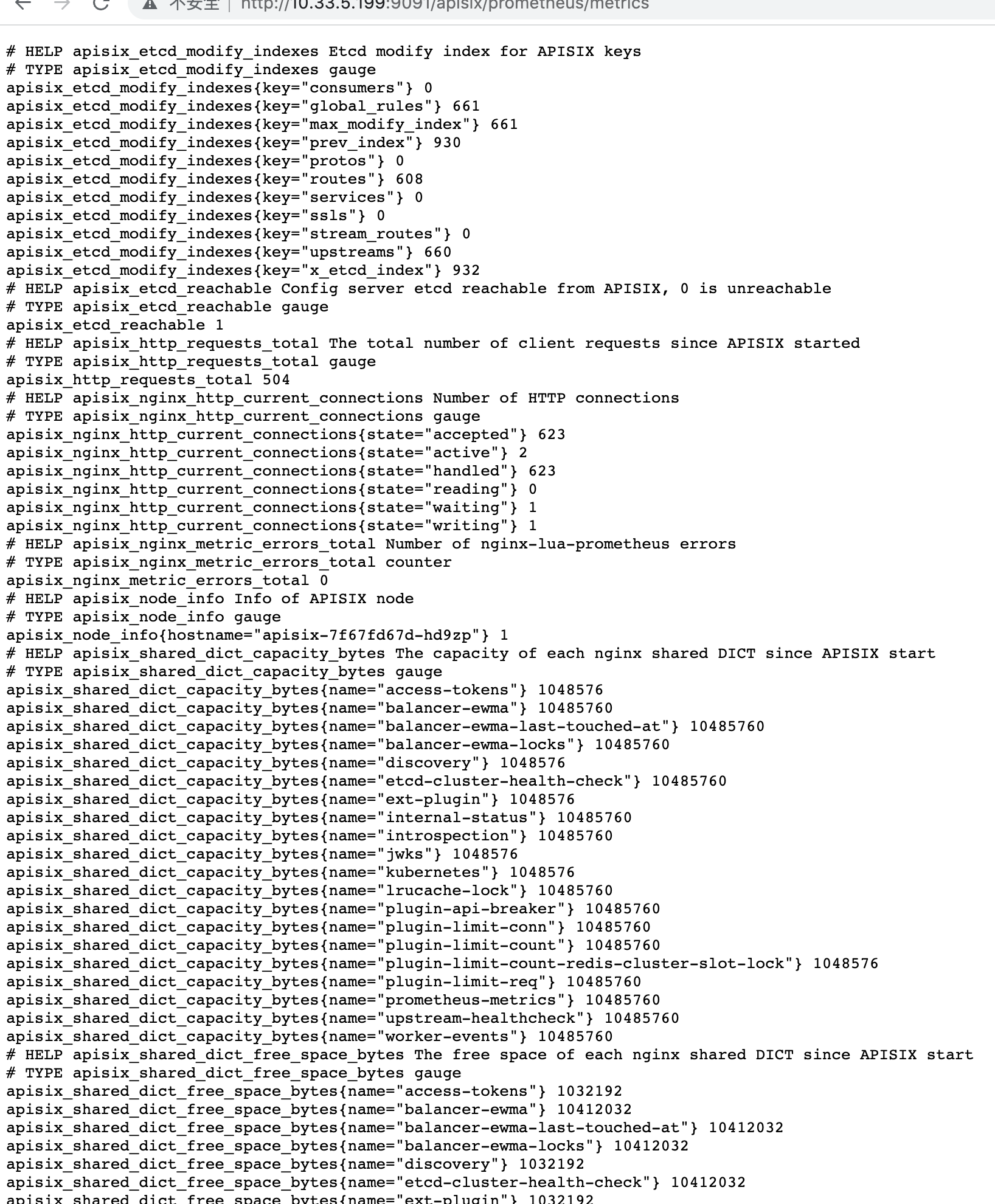 ### Description here is my metrics returned by prometheus, no apisix_bandwidth,apisix_batch_process_entries, apisix_http_status,apisix_http_latency_bucket  here is my chart configure  ### Environment - APISIX version (run `apisix version`): - Operating system (run `uname -a`): - OpenResty / Nginx version (run `openresty -V` or `nginx -V`): - etcd version, if relevant (run `curl http://127.0.0.1:9090/v1/server_info`): - APISIX Dashboard version, if relevant: - Plugin runner version, for issues related to plugin runners: - LuaRocks version, for installation issues (run `luarocks --version`): -- This is an automated message from the Apache Git Service. To respond to the message, please log on to GitHub and use the URL above to go to the specific comment. To unsubscribe, e-mail: [email protected] For queries about this service, please contact Infrastructure at: [email protected]