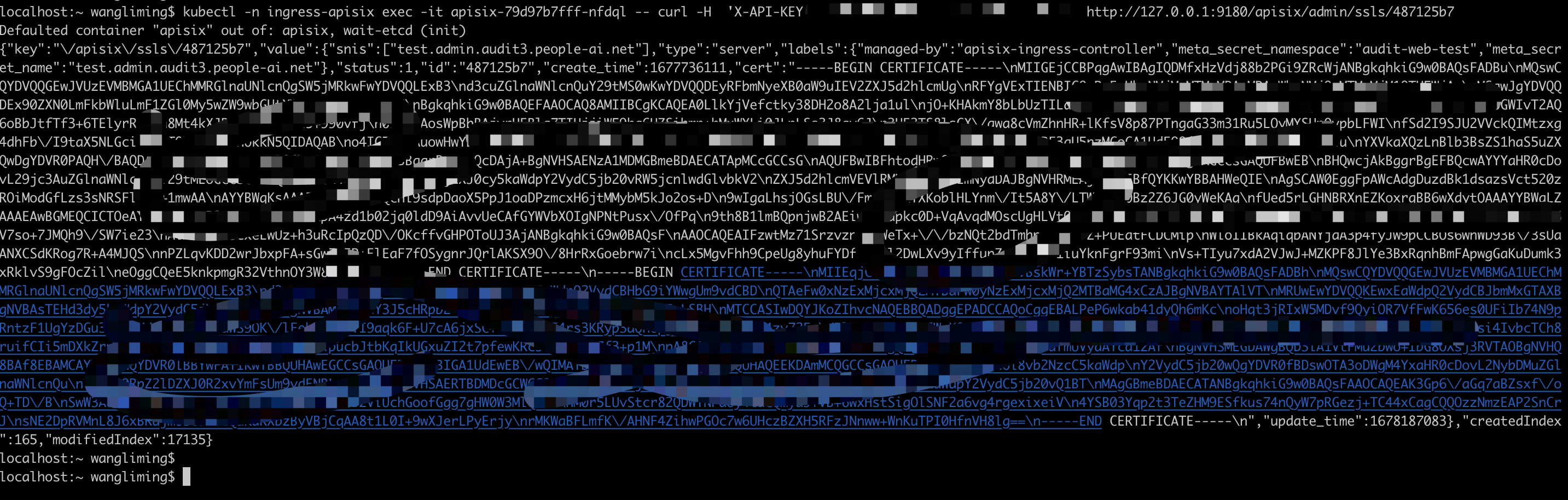 > Please use APISIX's admin API to check the SSL resource and verify its information. > > 请使用 APISIX 的管理 API 检查 SSL 资源并验证其信息。 > > If the resource information you see through the Admin API is in line with your expectations, then there may be a problem with the dashboard display. > > 如果您通过管理 API 看到的资源信息与您的预期一致,那么仪表板显示可能有问题。 > > The APISIX Ingress controller does not modify any data in your ApisixTls resource. > > APISIXInress 控制器不修改 ApisixTls 资源中的任何数据。  -- This is an automated message from the Apache Git Service. To respond to the message, please log on to GitHub and use the URL above to go to the specific comment. To unsubscribe, e-mail: [email protected] For queries about this service, please contact Infrastructure at: [email protected]