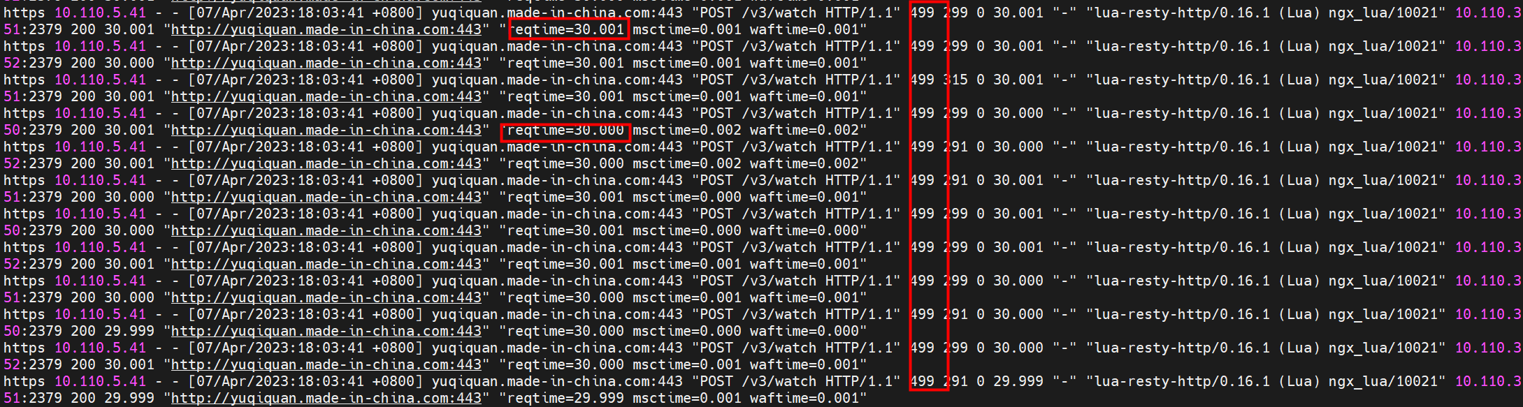 apisix能够获取到,但是如果我在dashboard中修改了路由信息,数据并不能同步到apisix,这里我就觉得是监听出了状况,查看源码,知道监听机制的超时时间是30s。结合日志