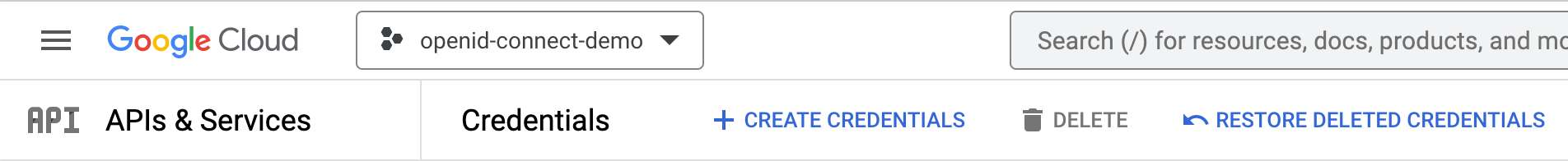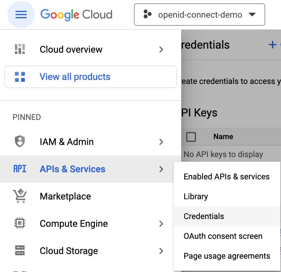 +In the project context, navigate _APIs & Services | Credentials_.