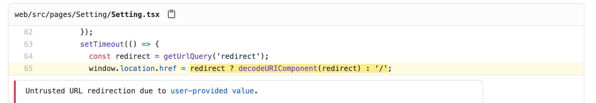 # Bug report ## Describe the bug https://github.com/apache/apisix-dashboard/security/code-scanning/3?query=ref%3Arefs%2Fheads%2Fmaster  Redirecting to a URL that is constructed from parts of the DOM that may be controlled by an attacker can facilitate phishing attacks. In these attacks, unsuspecting users can be redirected to a malicious site that looks very similar to the real site they intend to visit, but which is controlled by the attacker. ---------------------------------------------------------------- This is an automated message from the Apache Git Service. To respond to the message, please log on to GitHub and use the URL above to go to the specific comment. For queries about this service, please contact Infrastructure at: [email protected]