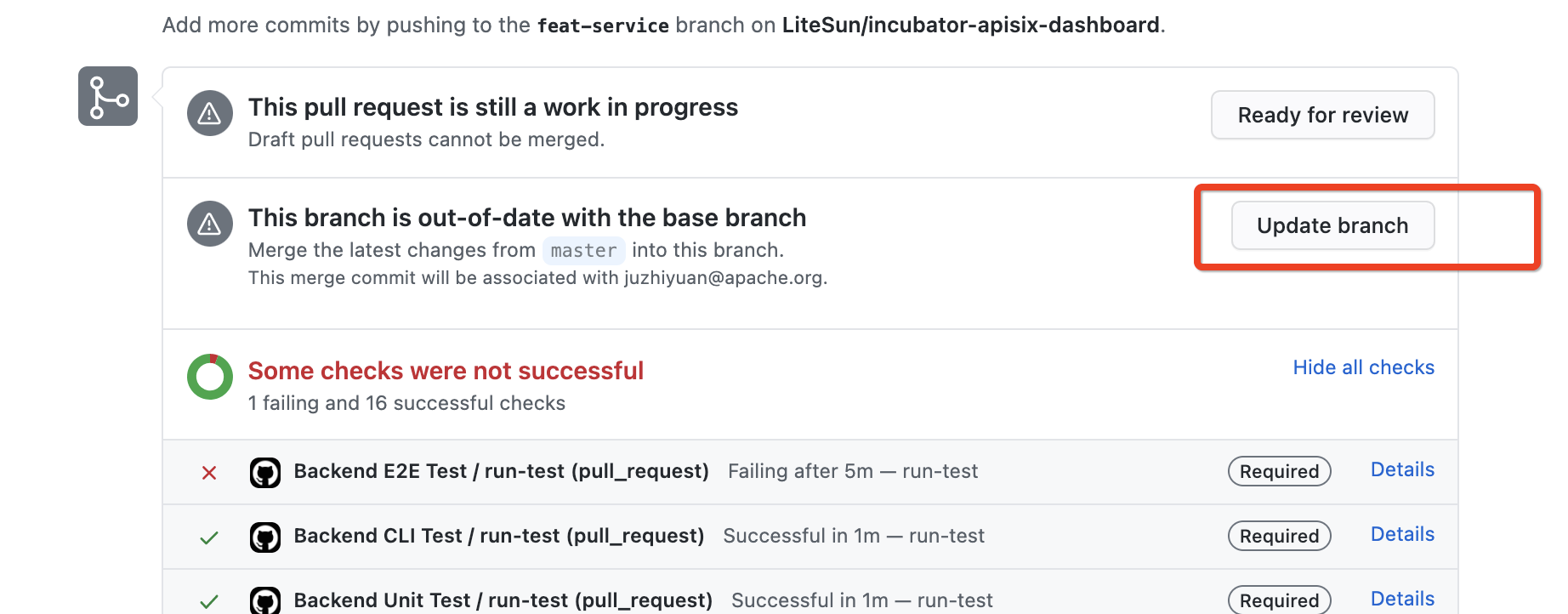 >  > > Hi @liuxiran, just enabled the **Update branch**, could we reconsider the PR? 1. I looked up several open source projects e.g: [apisix](https://github.com/apache/apisix/blob/0670eff88fdadb4d4a1d306086993557f2e3e3bf/.github/workflows/build.yml#L5) [skywalking](https://github.com/apache/skywalking/blob/e6265ba5be988c9b4c47252794a3684d544584d0/.github/workflows/ci-it.yaml#L21) [kubesphere](https://github.com/kubesphere/kubesphere/blob/d814d5db7bde49b44b31ad8ddf14da5517bc0c78/.github/workflows/build.yml#L6) they all run ci when push to master branch 1. the prs which does not have conflicts with the master branch, IMHO we did not need to do the rebase but this is just my personal opinion, we can listen to others‘ suggestions. ^_^ ---------------------------------------------------------------- This is an automated message from the Apache Git Service. To respond to the message, please log on to GitHub and use the URL above to go to the specific comment. For queries about this service, please contact Infrastructure at: [email protected]