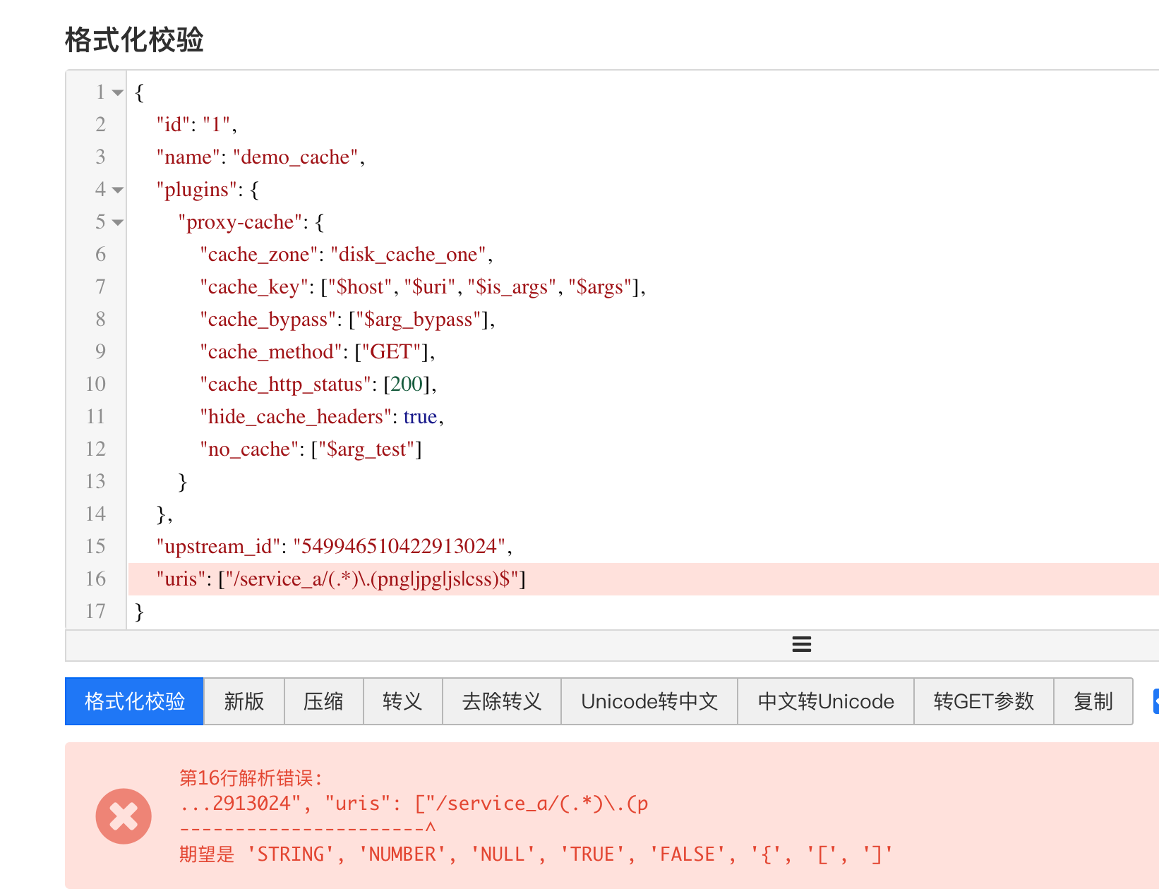 > > "uris": ["/service_a/(.*)\\.(png|jpg|js|css)$"]