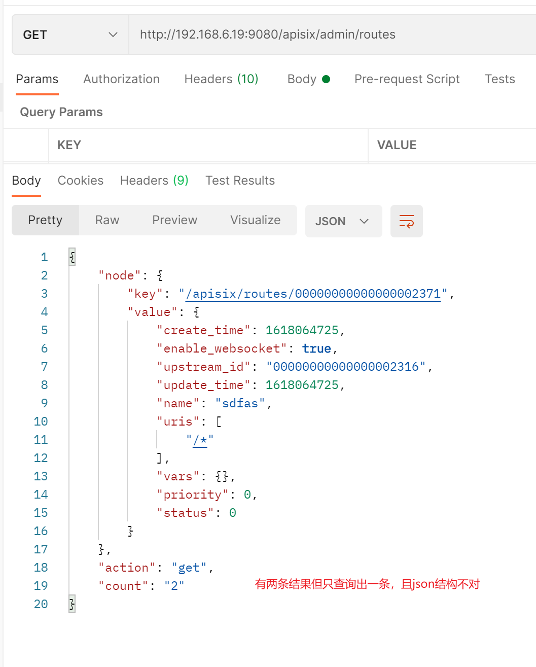 ### Issue description ### Environment * apisix version (cmd: `apisix version`): 2.4 * OS (cmd: `uname -a`): linux * OpenResty / Nginx version (cmd: `nginx -V` or `openresty -V`): 1.19.3.1 * etcd version, if have (cmd: run `curl http://127.0.0.1:9090/v1/server_info` to get the info from server-info API): 3.4.0 * apisix-dashboard version, if have: ### Minimal test code / Steps to reproduce the issue 1.直接从etcd删除路由文件夹  2.重新调用api添加路由后,通过api查询路由列表,查询结果始终只有一条结果,且结构不对  3.重启apisix后恢复正常 -- This is an automated message from the Apache Git Service. To respond to the message, please log on to GitHub and use the URL above to go to the specific comment. For queries about this service, please contact Infrastructure at: [email protected]