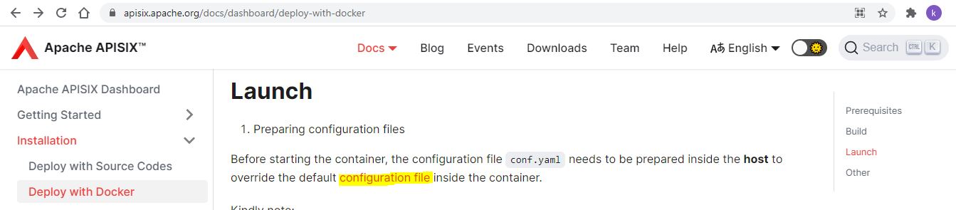 ## Issue description https://apisix.apache.org/docs/api/conf/conf.yaml is broken in deploy-with-docker  -- This is an automated message from the Apache Git Service. To respond to the message, please log on to GitHub and use the URL above to go to the specific comment. For queries about this service, please contact Infrastructure at: [email protected]
