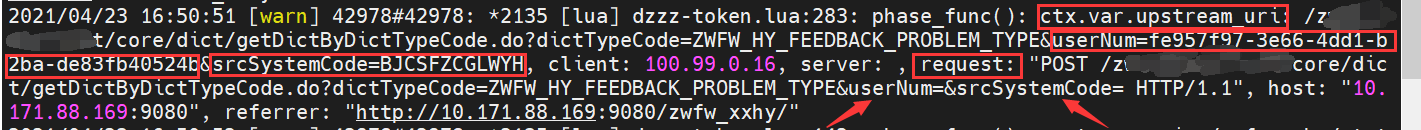 the first image I print the param 'upstream_uri' before I add other params into uri  the second image i print the param 'ctx.var.upstream_uri' after I add two params, 'token' and 'srcSystemCode'. But you can see in the log, the param 'request' without my params. -- This is an automated message from the Apache Git Service. To respond to the message, please log on to GitHub and use the URL above to go to the specific comment. For queries about this service, please contact Infrastructure at: [email protected]
