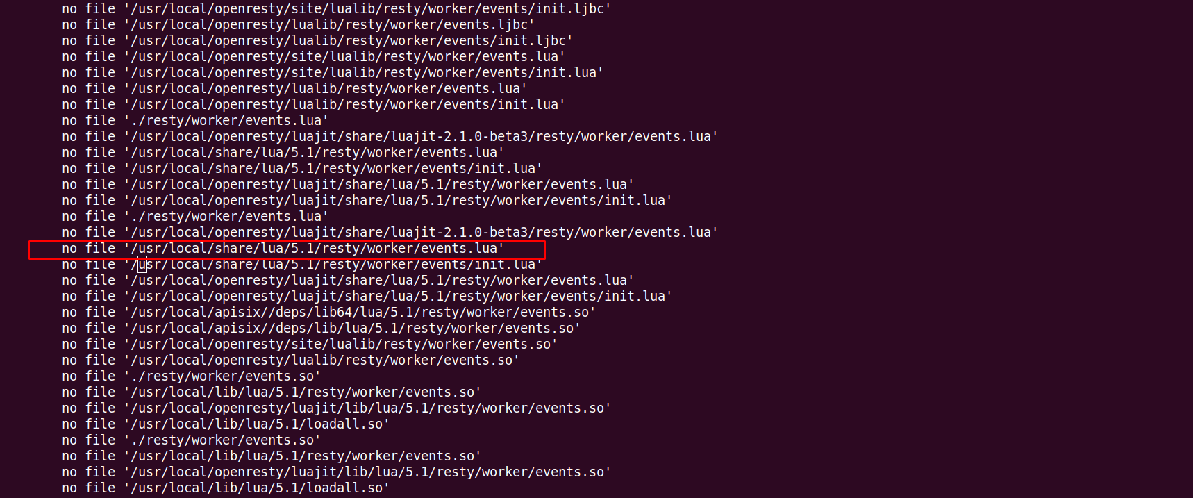 > 1. check that `events.lua` does not appear in the search path of the error log > 2. check the `events.lua` file permissions Thank you for your rely. I check the file`events.lua`esixts in the path below as the red box:  And the file permissions as follows  I installed the apisix with the `root` user all the time. -- This is an automated message from the Apache Git Service. To respond to the message, please log on to GitHub and use the URL above to go to the specific comment. For queries about this service, please contact Infrastructure at: [email protected]