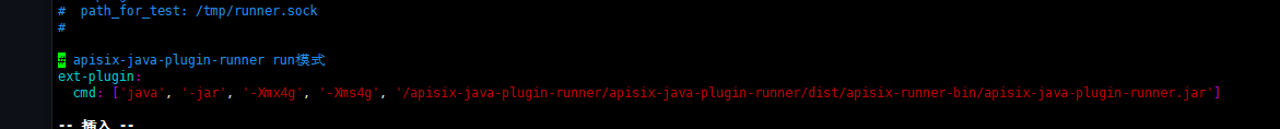 > How did you configure the below configuration in apisix > > ```yaml > ext-plugin: > cmd: > ``` 最后一个参数是我jar包的全路径  -- This is an automated message from the Apache Git Service. To respond to the message, please log on to GitHub and use the URL above to go to the specific comment. To unsubscribe, e-mail: [email protected] For queries about this service, please contact Infrastructure at: [email protected]