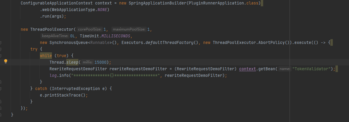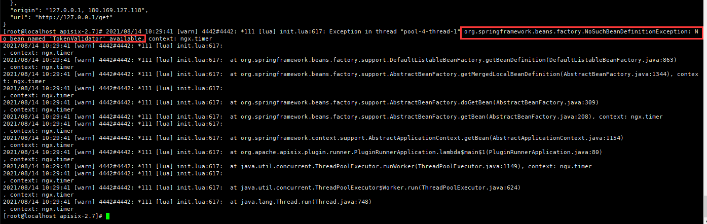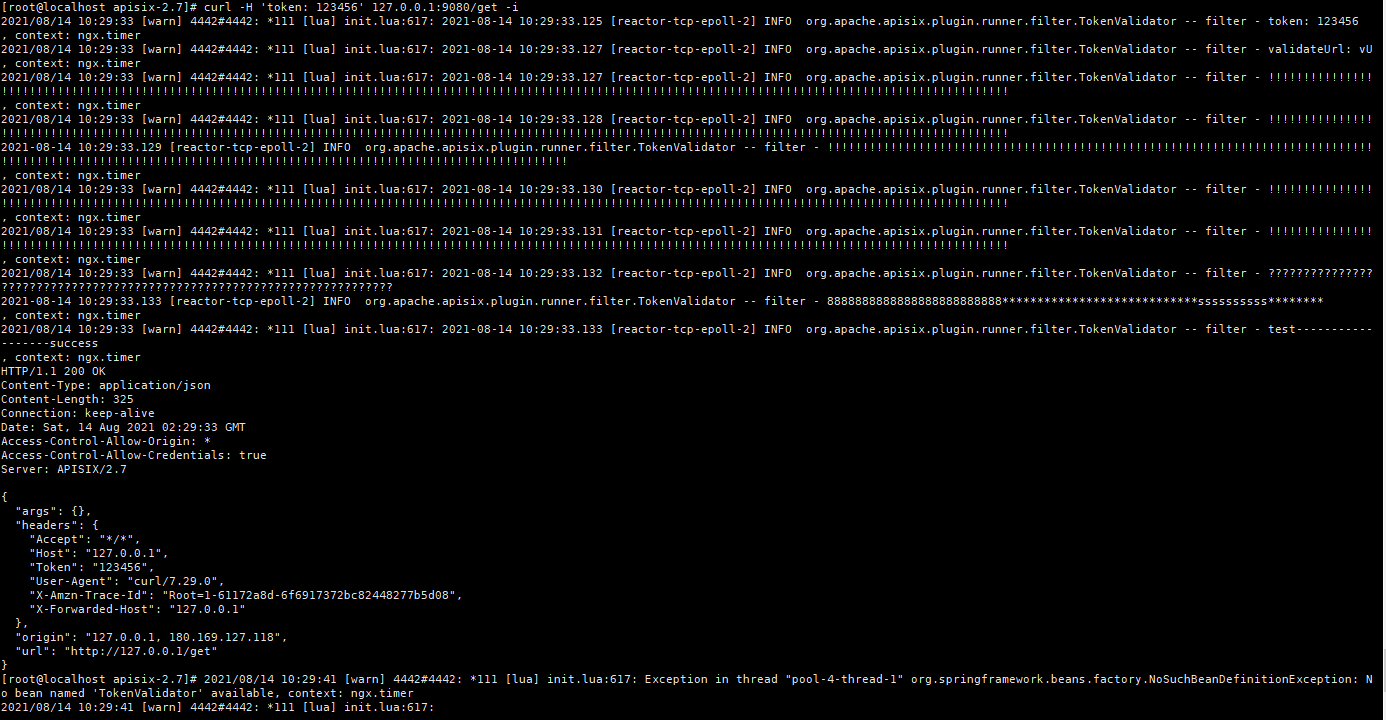 ### Issue description After the Java plugin is written and run, how does Apisix get the custom filter? Is it through the Spring container ### Environment apisix 2.7 apisix-java-plugin-runner 0.1 * your apisix-java-plugin-runner version I want to know: After the Java plugin is written and run, how does Apisix get the custom filter? Is it through the Spring ApplicationContext? I want to get the Filter Bean "TokenValidator" by code . So when apisix is running, I send the request filtered by the TokenValidator immediately . We can see the filter TokenValidator was running. But I can't get the TokenValidator Bean from the Spring applicationContext . why? Is it because it's not in the spring applicationContext? the java code : after apisix running for 15 seconds  (During this time I send a request from curl,can proved that the filter TokenValidator worked) ,  I just tried to get the bean from spring applicationContext, but it turned out not to exist.  -- This is an automated message from the Apache Git Service. To respond to the message, please log on to GitHub and use the URL above to go to the specific comment. To unsubscribe, e-mail: [email protected] For queries about this service, please contact Infrastructure at: [email protected]