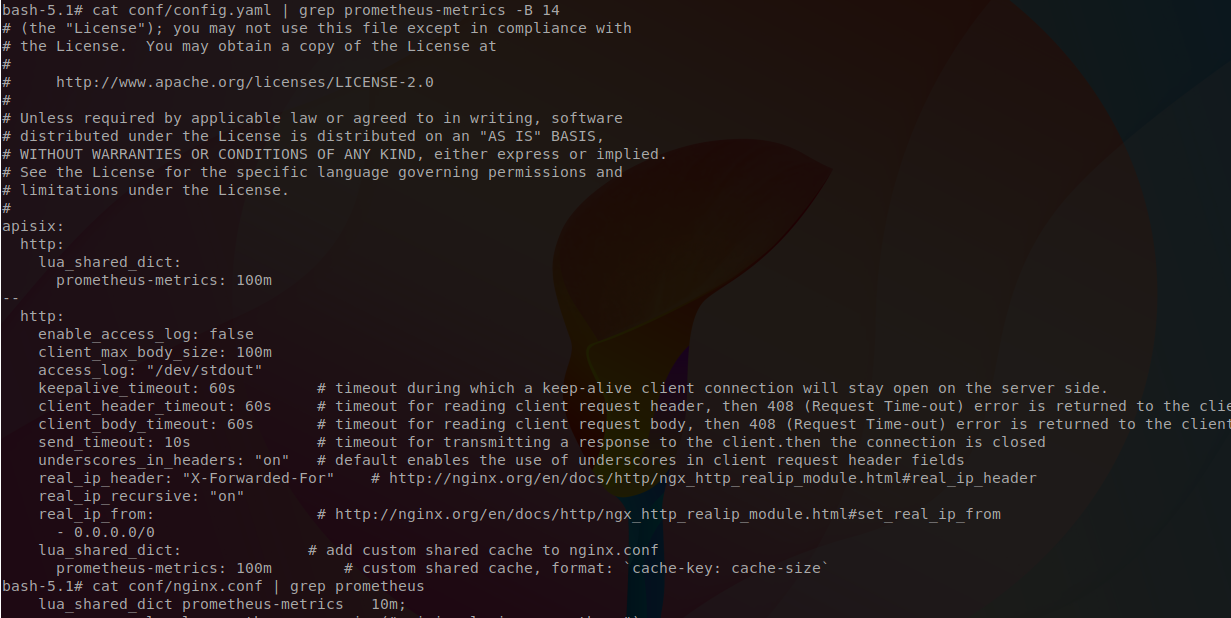 > try > > ``` > apisix: > http: > lua_shared_dict: > prometheus-metrics: 10m > ``` > > in `config.yaml` I set this to 100m both in `apisix.http.lua_shared_dict.prometheus-metrics` AND `nginx_config.http.lua_shared_dict.prometheus-metrics` in `config.yml`, but value in conf/nginx.conf is still be 10m.  -- This is an automated message from the Apache Git Service. To respond to the message, please log on to GitHub and use the URL above to go to the specific comment. To unsubscribe, e-mail: [email protected] For queries about this service, please contact Infrastructure at: [email protected]