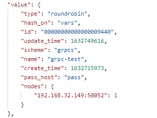 > @whioue Please provide more details about: > > 1. The route you created; > 2. You have to prepare an TLS keypair and configure them as an APISIX SSL object if you want to access the 9443 port. the route value is :  the upstream is:  I have configured SSL, certificate and key is same as grpc_ server_ example. -- This is an automated message from the Apache Git Service. To respond to the message, please log on to GitHub and use the URL above to go to the specific comment. To unsubscribe, e-mail: [email protected] For queries about this service, please contact Infrastructure at: [email protected]