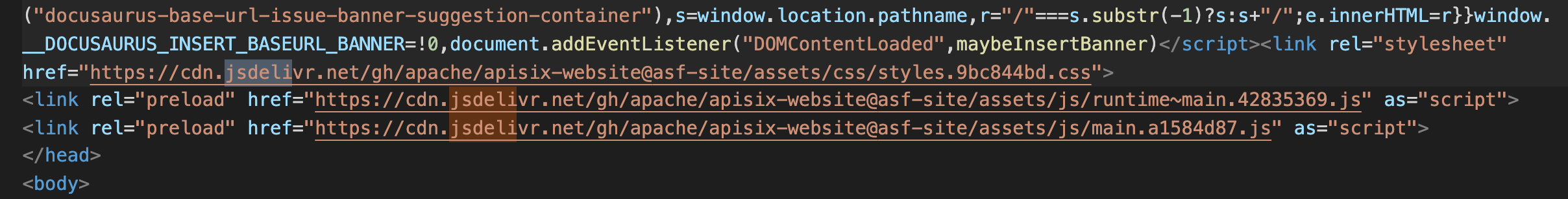Changes: - support using ssrTemplate with jsDelivr to load JS contents, see https://docusaurus.io/docs/api/docusaurus-config#ssrtemplate Screenshots of the change:  -- This is an automated message from the Apache Git Service. To respond to the message, please log on to GitHub and use the URL above to go to the specific comment. To unsubscribe, e-mail: [email protected] For queries about this service, please contact Infrastructure at: [email protected]