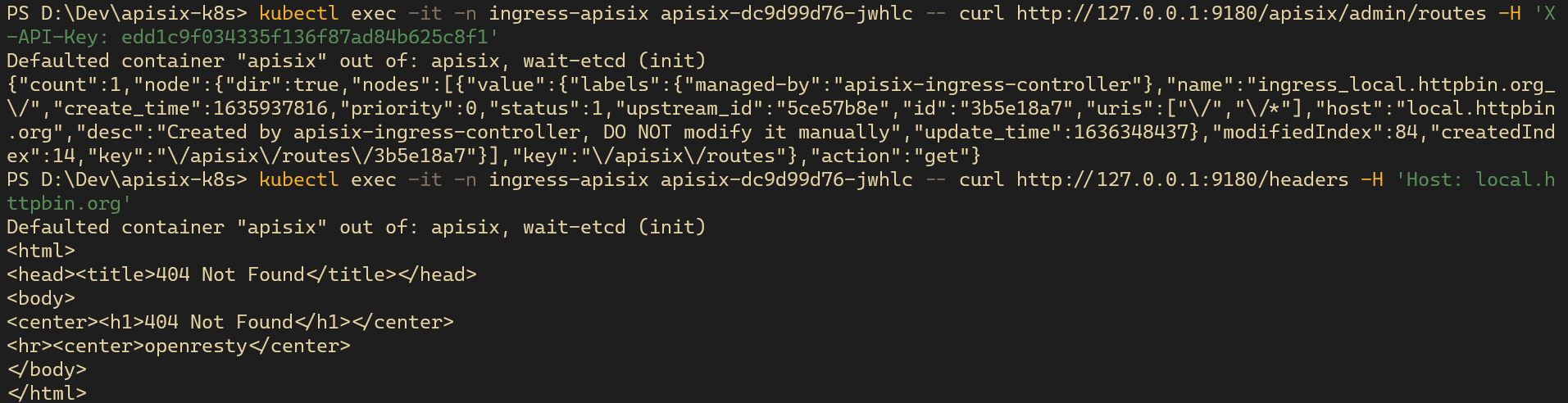 Same issue. Ref docs: [Install Ingress APISIX on Minikube](https://github.com/apache/apisix-ingress-controller/blob/master/docs/en/latest/deployments/minikube.md) and [Proxy httpbin service](https://github.com/apache/apisix-ingress-controller/blob/master/docs/en/latest/practices/proxy-the-httpbin-service.md).  I also try out: `kubectl run httpbin --image kennethreitz/httpbin --port 80 -n ingress-apisix`. -- This is an automated message from the Apache Git Service. To respond to the message, please log on to GitHub and use the URL above to go to the specific comment. To unsubscribe, e-mail: [email protected] For queries about this service, please contact Infrastructure at: [email protected]