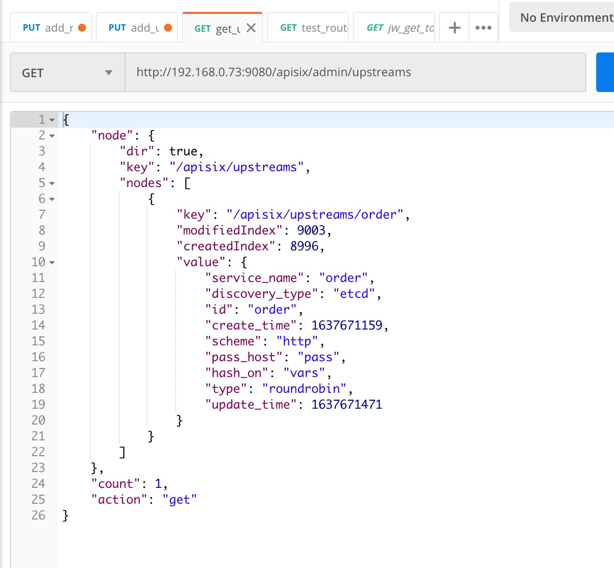> > the LINKS have the usage of Eureka/Consul/Nacos, but dont have the etcd usage. > > yes, see: [#4442 (comment)](https://github.com/apache/apisix/issues/4442#issuecomment-863746666), you need to register `order` as upstream of APISIX, like: > > ``` > /apisix/upstreams/order > …… > ``` It's also faild if I use this method, please help me check logs:     -- This is an automated message from the Apache Git Service. To respond to the message, please log on to GitHub and use the URL above to go to the specific comment. To unsubscribe, e-mail: [email protected] For queries about this service, please contact Infrastructure at: [email protected]