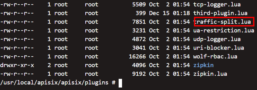 And I change the > You can check if the plugin file exists in the `apisix/plugins/` directory and the permissions of the file. Seem no difference  -- This is an automated message from the Apache Git Service. To respond to the message, please log on to GitHub and use the URL above to go to the specific comment. To unsubscribe, e-mail: [email protected] For queries about this service, please contact Infrastructure at: [email protected]