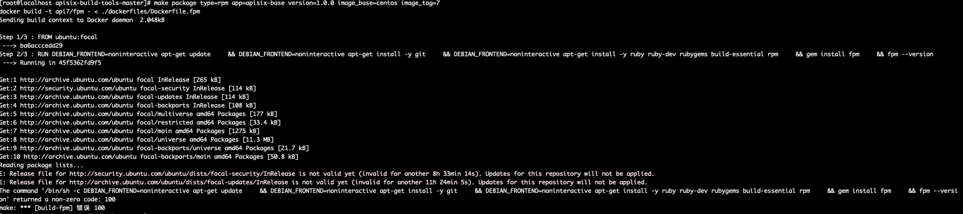 > and take a look at:[#5166 (comment)](https://github.com/apache/apisix/issues/5166#issuecomment-966902008) I have tried to use apifix build tools to produce the compilation environment, but the following error is reported. The execution command is 'make package type=rpm app=apisix-base version=1.0.0 image_base=centos image_tag=7'  -- This is an automated message from the Apache Git Service. To respond to the message, please log on to GitHub and use the URL above to go to the specific comment. To unsubscribe, e-mail: [email protected] For queries about this service, please contact Infrastructure at: [email protected]