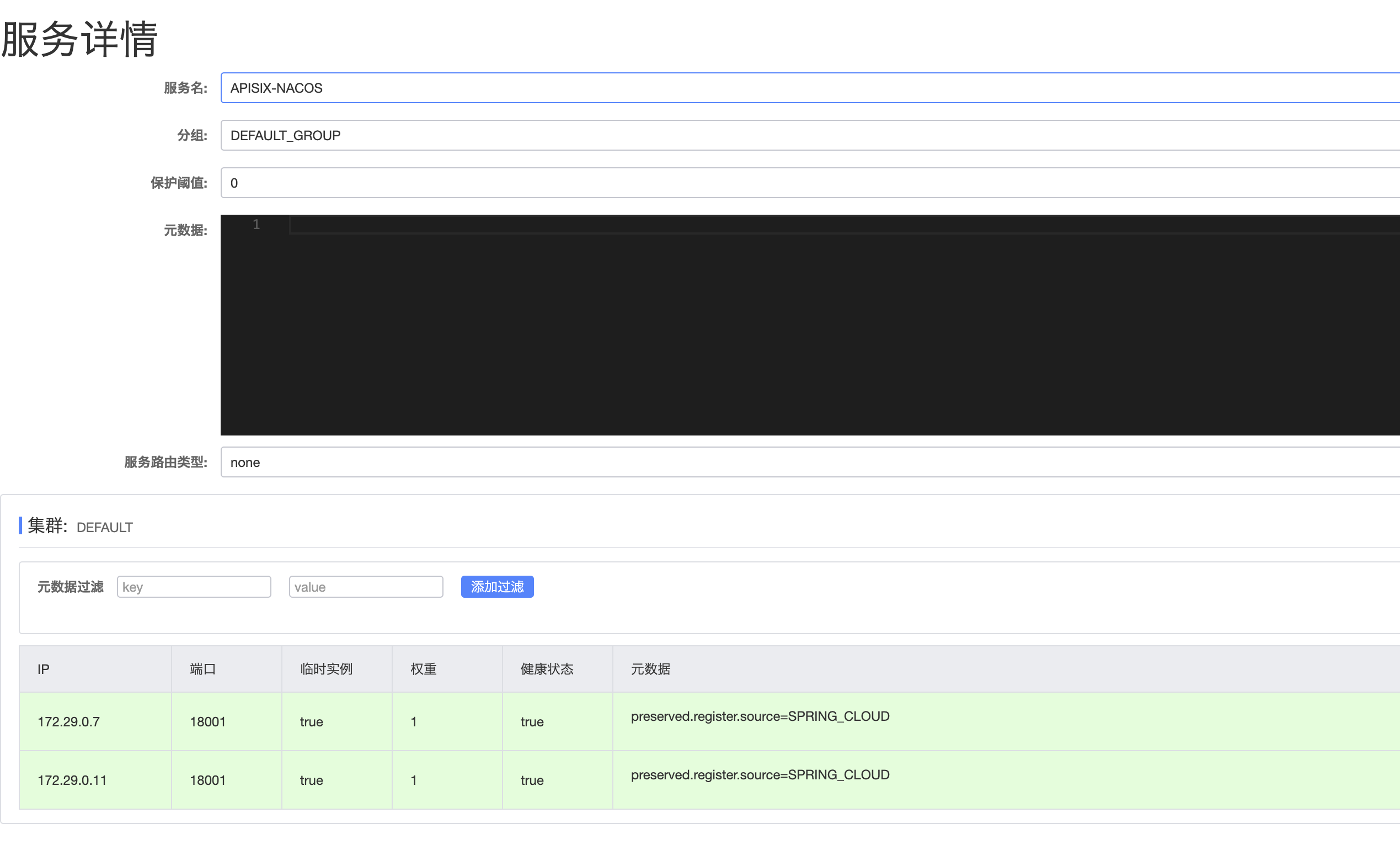 ########## File path: t/discovery/nacos2.t ########## @@ -112,3 +112,105 @@ GET /hello --- error_code_like: ^(?:50\d)$ --- error_log nacos login fail + + + +=== TEST 3: same service is registered in route, service and upstream, de-duplicate +--- yaml_config +apisix: + node_listen: 1984 + admin_key: null +--- extra_yaml_config +discovery: + nacos: + host: + - "http://127.0.0.1:8858" + fetch_interval: 1 +--- config + location /t { + content_by_lua_block { + local t = require("lib.test_admin").test + + local code, body = t('/apisix/admin/routes/1', + ngx.HTTP_PUT, + [[{ + "uri": "/hello", + "upstream": { + "service_name": "APISIX-NACOS", + "discovery_type": "nacos", + "scheme": "http", + "type": "roundrobin", + "discovery_args": { + "namespace_id": "public", + "group_name": "DEFAULT_GROUP" + } + } + }]] + ) + + if code >= 300 then + ngx.status = code + end + + local code, body = t('/apisix/admin/services/1', + ngx.HTTP_PUT, + [[{ + "upstream": { + "type": "roundrobin", + "scheme": "http", + "discovery_type": "nacos", + "pass_host": "pass", + "service_name": "APISIX-NACOS", + "discovery_args": { + "namespace_id": "public", + "group_name": "DEFAULT_GROUP" + } + } + }]] + ) + + if code >= 300 then + ngx.status = code + end + + local code, body = t('/apisix/admin/upstreams/1', + ngx.HTTP_PUT, + [[{ + "type": "roundrobin", + "scheme": "http", + "discovery_type": "nacos", + "pass_host": "pass", + "service_name": "APISIX-NACOS", + "discovery_args": { + "namespace_id": "public", + "group_name": "DEFAULT_GROUP" + } + }]] + ) + + if code >= 300 then + ngx.status = code + end + + ngx.sleep(1.5) + + local json_decode = require("toolkit.json").decode + local http = require "resty.http" + local httpc = http.new() + local dump_uri = "http://127.0.0.1:" .. ngx.var.server_port .. "/v1/discovery/nacos/dump" + local res, err = httpc:request_uri(dump_uri, { method = "GET"}) + if err then + ngx.log(ngx.ERR, err) + ngx.status = res.status + return + end + + local body = json_decode(res.body) + local services = body.services + local service = services["public"]["DEFAULT_GROUP"]["APISIX-NACOS"] + local number = table.getn(service) + ngx.say(number) + } + } +--- response_body +2 Review comment: In fact, it is 2 instances of the same service. In docker-compose, the 2 service instances are started with the same namespace, group and service name, but have different exposed ports, which is equivalent to different instances of the same service registered to nacos. docker-compose: https://github.com/apache/apisix/blob/48398d3f1501fe425b08673609605ea9d8039f54/ci/pod/docker-compose.yml#L230-L263 these 2 service instances on nacos-dashboard:  Before de-duplication, the number of APISIX fetches to these two services is 6: https://github.com/apache/apisix/runs/5180101415?check_suite_focus=true  6 = 2 instances * ( in route + in service + in upstream ) -- This is an automated message from the Apache Git Service. To respond to the message, please log on to GitHub and use the URL above to go to the specific comment. To unsubscribe, e-mail: [email protected] For queries about this service, please contact Infrastructure at: [email protected]