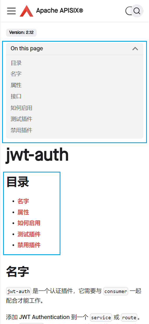 > > A question: now the page has a `on the page` block, do we still need the TOC paragraph?  > > And do we have any other clickable elements need to be modified? > > I think TOC paragraph should be kept, `on the page` block can be removed. This allows the pc and mobile to have the same directory and the changes are smaller. AFAIK, we will remove all outlines from markdown files, could check apache/apisix's issue 😄 -- This is an automated message from the Apache Git Service. To respond to the message, please log on to GitHub and use the URL above to go to the specific comment. To unsubscribe, e-mail: [email protected] For queries about this service, please contact Infrastructure at: [email protected]