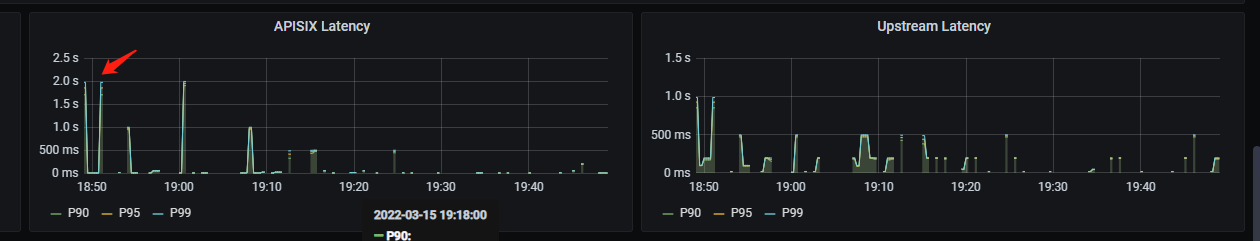 > @tzssangglass ,I have updated the version of nginx-lua-prometheus dependency package. I directly used the new version of dependency package when packaging with dockerfile. My version of apifix is 2.11.0. As shown in the figure. I found that the apifix delay on grafana is not stable, as shown in the figure. At the beginning, it is 190ms, and then it becomes more than 1s. > > And, looking at the graph of grafana, the delay is still relatively large. I just piloted a few services. The QPS is less than 100, and the CPU utilization of the gateway is also very low. > >  > >  > > the access.log of the nginx print the variable below: $request_time $upstream_connect_time $upstream_response_time in the access.log , I can not find the record who has so manay delay time. Building your own image is a black box for us developers (even if you say how you built it, we still don't have access to its details) Now that the apisix-dev image builds the master branch once a day and pushes it to Docker Hub, can you use this image to verify the problem? ref: https://hub.docker.com/r/apache/apisix/tags?page=1&name=dev -- This is an automated message from the Apache Git Service. To respond to the message, please log on to GitHub and use the URL above to go to the specific comment. To unsubscribe, e-mail: [email protected] For queries about this service, please contact Infrastructure at: [email protected]
