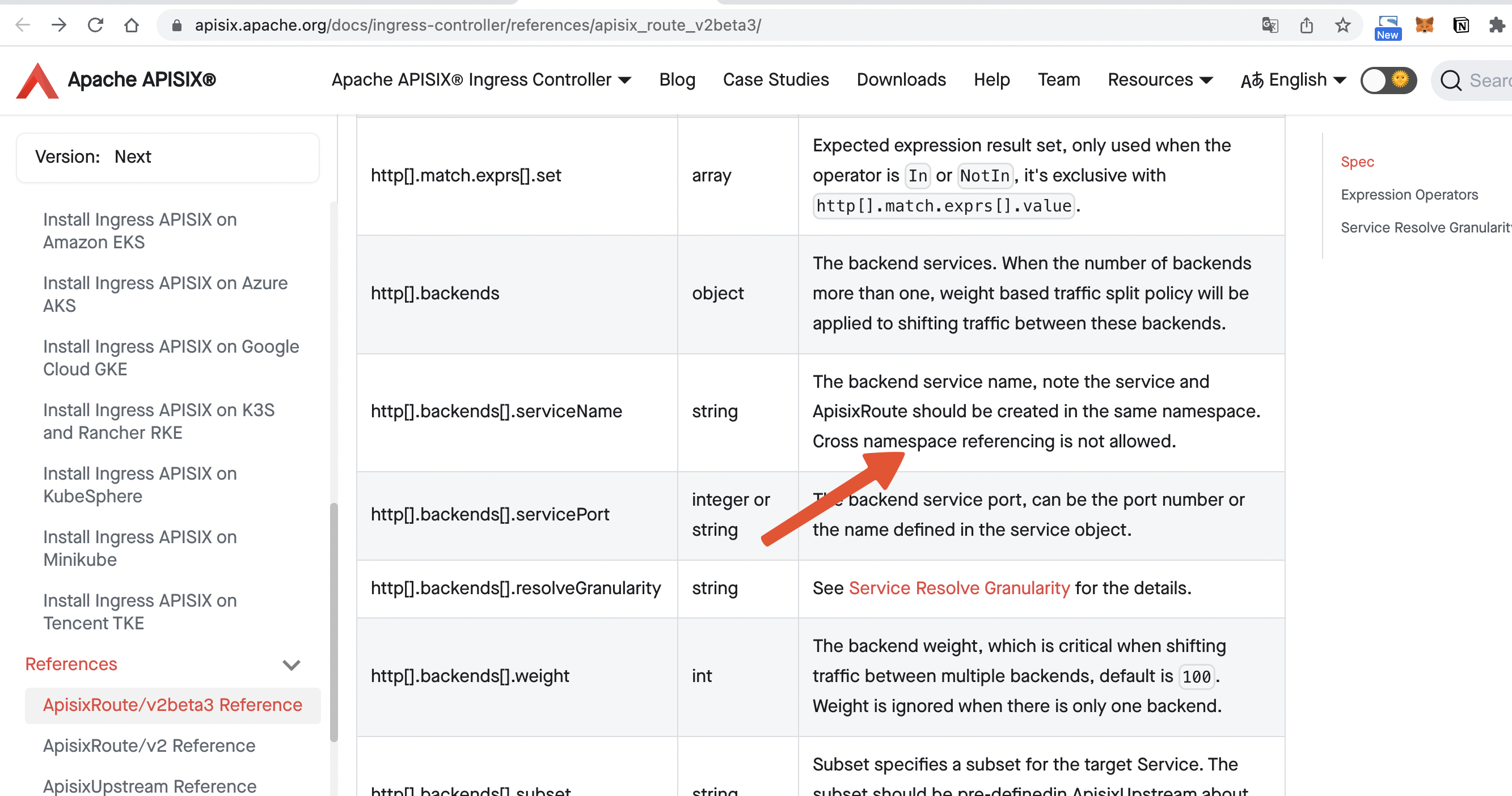 ### Issue description Hi, I followed the document to install APISIX Ingress Controller on GKE. However, when I tried this tutorial[1], it showed that "It's not allowed to refer to other namespace's service," but I could access other namespace's service successfully.  [1] https://apisix.apache.org/docs/ingress-controller/tutorials/proxy-the-httpbin-service ### Environment - your apisix-ingress-controller version (output of apisix-ingress-controller version --long): None - your Kubernetes cluster version (output of kubectl version): None - if you run apisix-ingress-controller in Bare-metal environment, also show your OS version (uname -a): None ### Minimal test code / Steps to reproduce 1. Install APISIX Ingress Controller via Helm on GKE, according to https://apisix.apache.org/docs/ingress-controller/deployments/gke/. Note: this is in the `ingress-apisix` namespace. 2. Follow this tutorial[1] to run a httpbin pod and apply the `httpbin-route.yaml` in the `default` namespace. 3. Access LoadBalancer's External IP, succeed in accessing the `default` namespace's service. [1] https://apisix.apache.org/docs/ingress-controller/tutorials/proxy-the-httpbin-service ### Actual result See Steps to reproduce. ### Error log None ### Expected result  -- This is an automated message from the Apache Git Service. To respond to the message, please log on to GitHub and use the URL above to go to the specific comment. To unsubscribe, e-mail: [email protected] For queries about this service, please contact Infrastructure at: [email protected]
