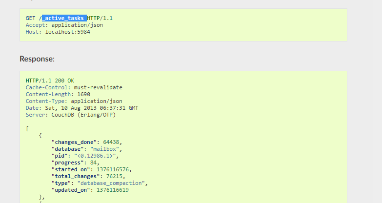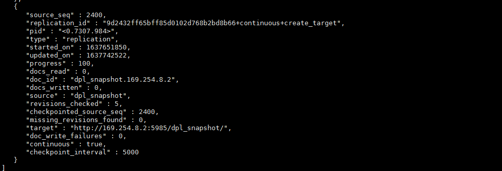 j just migrate my application from 1.6.1 to 2.3.1 find my couchdb GET /_active_tasks HTTP/1.1 no process field as telled in the document, so any guys can tell me how to know couchdb sync state in a timepoint, in the past i just use process field.  2.3.1  1.6.1  -- This is an automated message from the Apache Git Service. To respond to the message, please log on to GitHub and use the URL above to go to the specific comment. To unsubscribe, e-mail: [email protected] For queries about this service, please contact Infrastructure at: [email protected]
