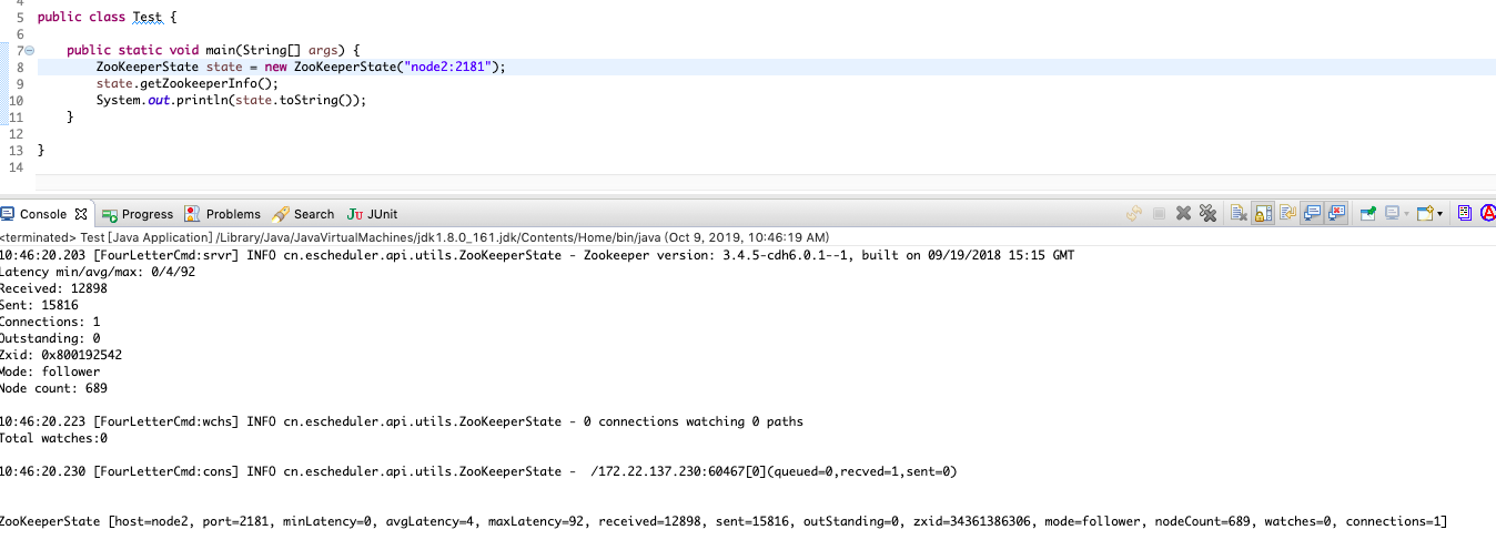 lianayu opened a new issue #967: [dev]Zookeeper 管理 can't response right datas. URL: https://github.com/apache/incubator-dolphinscheduler/issues/967 We Compiled dev source code and start service .We found that the interface "escheduler/monitor/zookeeper/list" could not obtain zk right state  but We started release 1.1.0 backend,response right I also run release 1.1.0 source  but run dev echo this msg.  -------------------------- 我们通过dev 分支打包,启动服务后发现“escheduler/monitor/zookeeper/list”接口获取的数据不正确;但是我们启动 release 1.1.0 的backend 接口返回没问题。 我们本地运行release 1.1.0 分支代码也能够获取zk 状态信息;但是运行dev 分支就不行。。 **Which version of Easy Scheduler:** -[dev]