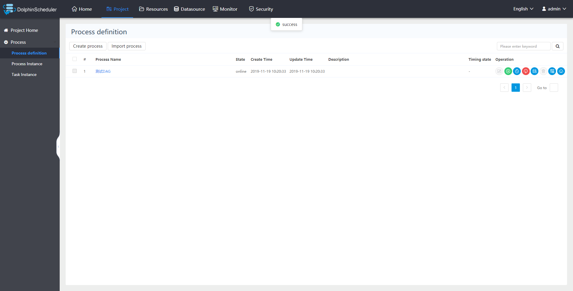 Right-ydd opened a new issue #1280: start process instance is invalid URL: https://github.com/apache/incubator-dolphinscheduler/issues/1280 *For better global communication, please give priority to using English description, thx! * **Describe the question** in menu Process definition click start alter success but no effect **Which version of DolphinScheduler:** -[dev] **Additional context**        **Requirement or improvement - I hope to get help, thank you.