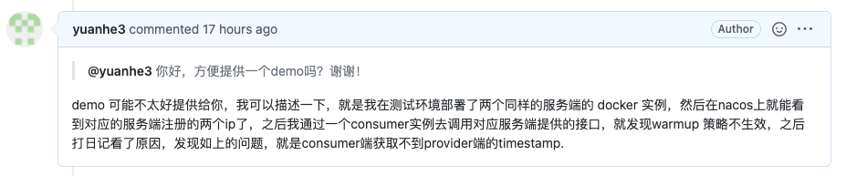 > > using application-level registration discovery > > I tried it on this machine, and the application-level service discovery can get the timestrap field on the instance. > > Can you describe how it is used? It would be better if you could provide a demo.  -- This is an automated message from the Apache Git Service. To respond to the message, please log on to GitHub and use the URL above to go to the specific comment. To unsubscribe, e-mail: [email protected] For queries about this service, please contact Infrastructure at: [email protected] --------------------------------------------------------------------- To unsubscribe, e-mail: [email protected] For additional commands, e-mail: [email protected]