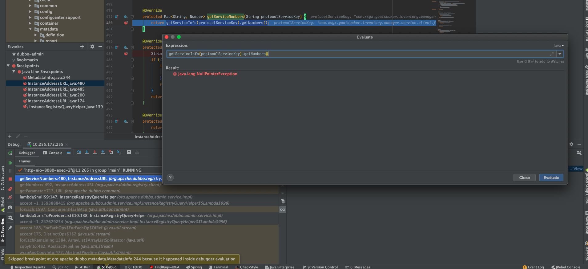 <!-- If you need to report a security issue please visit https://github.com/apache/dubbo/security/policy --> - [ ] I have searched the [issues](https://github.com/apache/dubbo/issues) of this repository and believe that this is not a duplicate. ### Environment * Dubbo version: 3.0.9 * Operating System version: MacOS 10.15.7 * Java version: 1.8.0_231 ### Steps to reproduce this issue 1. InstanceAddressURL.getValidServiceInfo(String serviceKey)可能返回为null 2. 执行方法InstanceAddressURL.getServiceNumbers(String protocolServiceKey)时会报空指针异常   Pls. provide [GitHub address] to reproduce this issue. ### Expected Behavior <!-- What do you expect from the above steps?--> ### Actual Behavior <!-- What actually happens? --> If there is an exception, please attach the exception trace: ``` Just put your stack trace here! ``` -- This is an automated message from the Apache Git Service. To respond to the message, please log on to GitHub and use the URL above to go to the specific comment. To unsubscribe, e-mail: [email protected] For queries about this service, please contact Infrastructure at: [email protected] --------------------------------------------------------------------- To unsubscribe, e-mail: [email protected] For additional commands, e-mail: [email protected]
