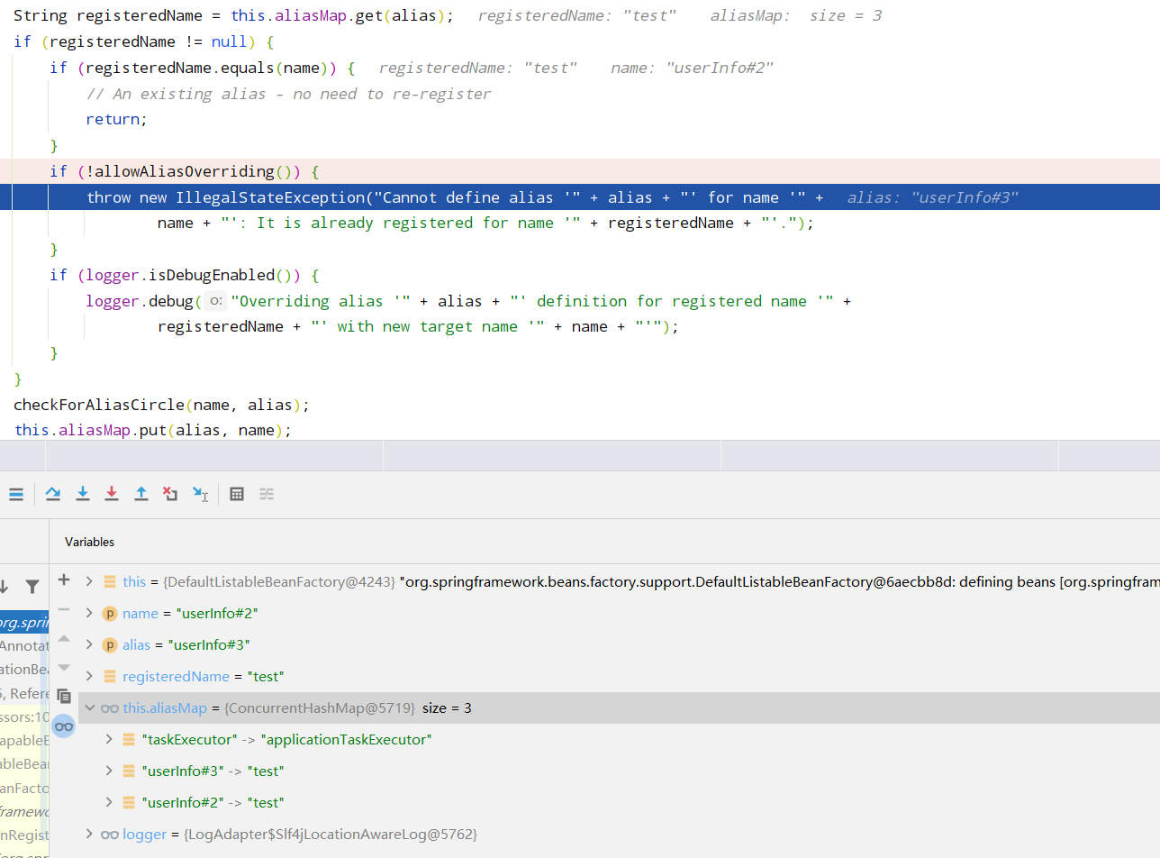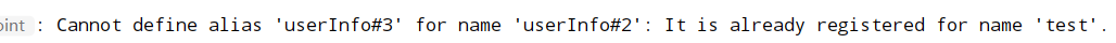 被他之前自己注册过了,之后会注册别名 userInfo#3: userInfo#2 此时因为别名 userInfo#3 被 test 注册过了 如果