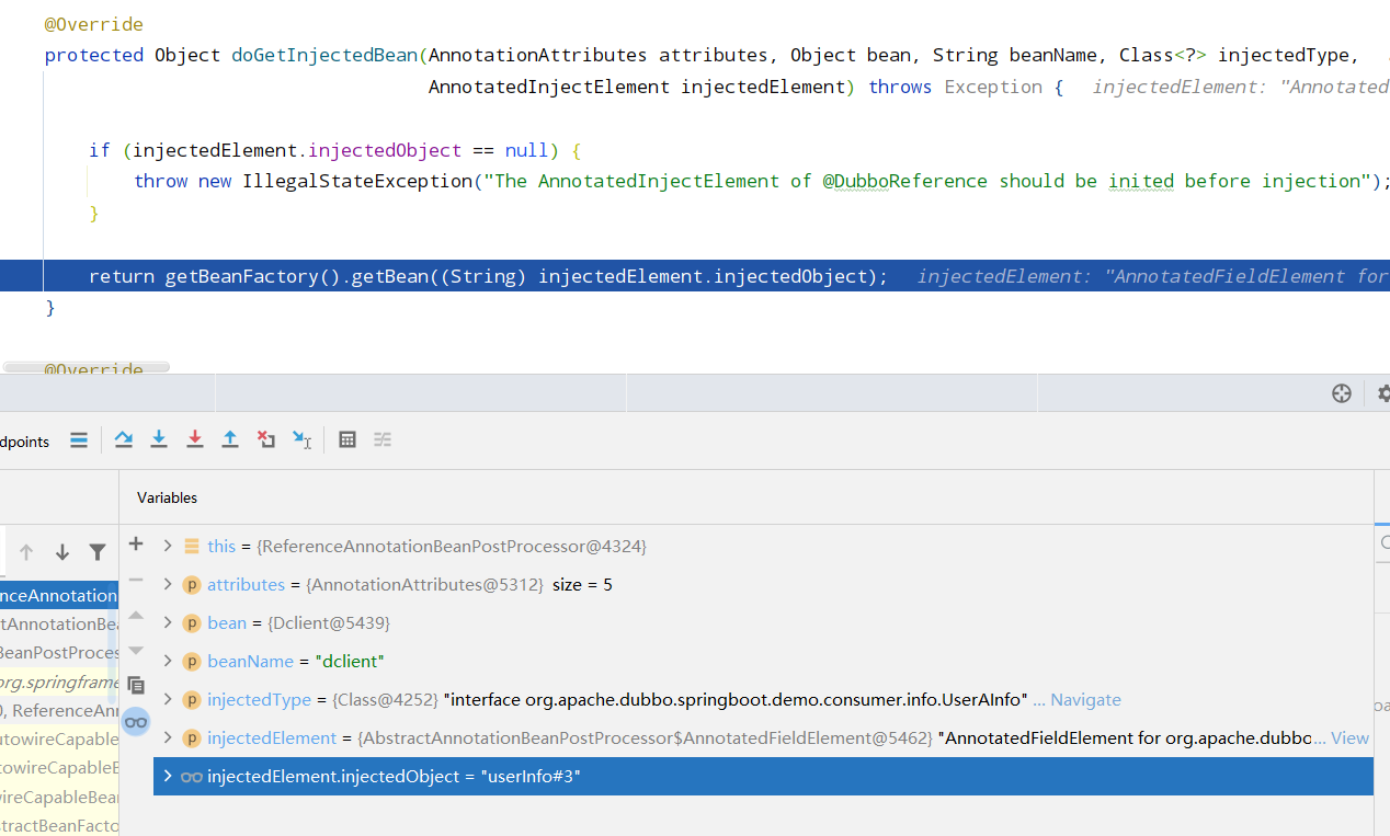 这部分执行时 C类获取到 newReferenceBeanName 应该是 userInfo#3 ,因为 userInfo 和 userInfo#2 被