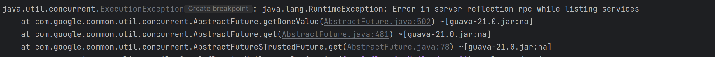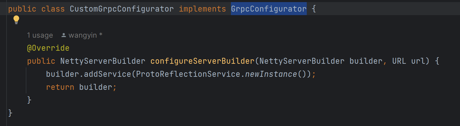 我尝试使用 grpc reflection 的方式进行泛化调用; dubbo provider 实现 GrpcConfigurator 启用反射服务:  但是泛化调用客户端在通过ServerReflectionGrpc.ServerReflectionStub获取FileDescriptorSet时,会报错:  -- This is an automated message from the Apache Git Service. To respond to the message, please log on to GitHub and use the URL above to go to the specific comment. To unsubscribe, e-mail: [email protected] For queries about this service, please contact Infrastructure at: [email protected] --------------------------------------------------------------------- To unsubscribe, e-mail: [email protected] For additional commands, e-mail: [email protected]