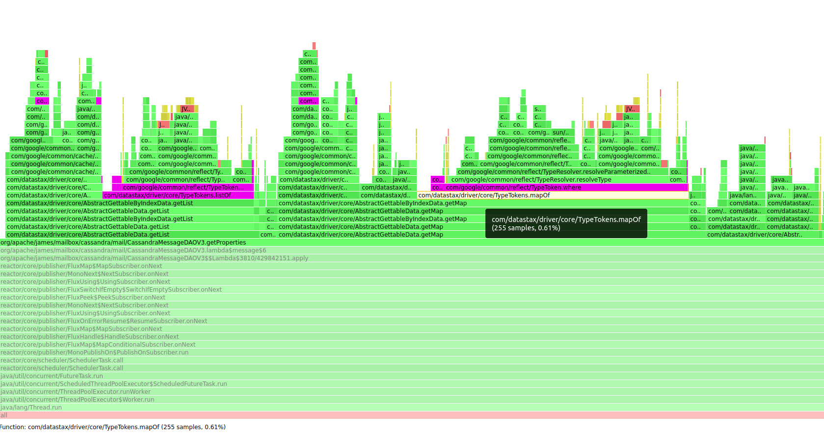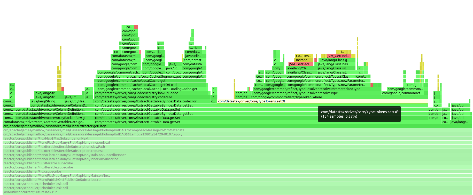 There computing take up to 1,3% of CPU time, doing reflection over and over again to build them. See the following flame graphs:   -- This is an automated message from the Apache Git Service. To respond to the message, please log on to GitHub and use the URL above to go to the specific comment. For queries about this service, please contact Infrastructure at: [email protected] --------------------------------------------------------------------- To unsubscribe, e-mail: [email protected] For additional commands, e-mail: [email protected]