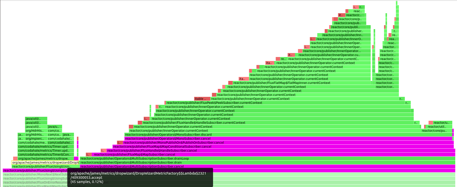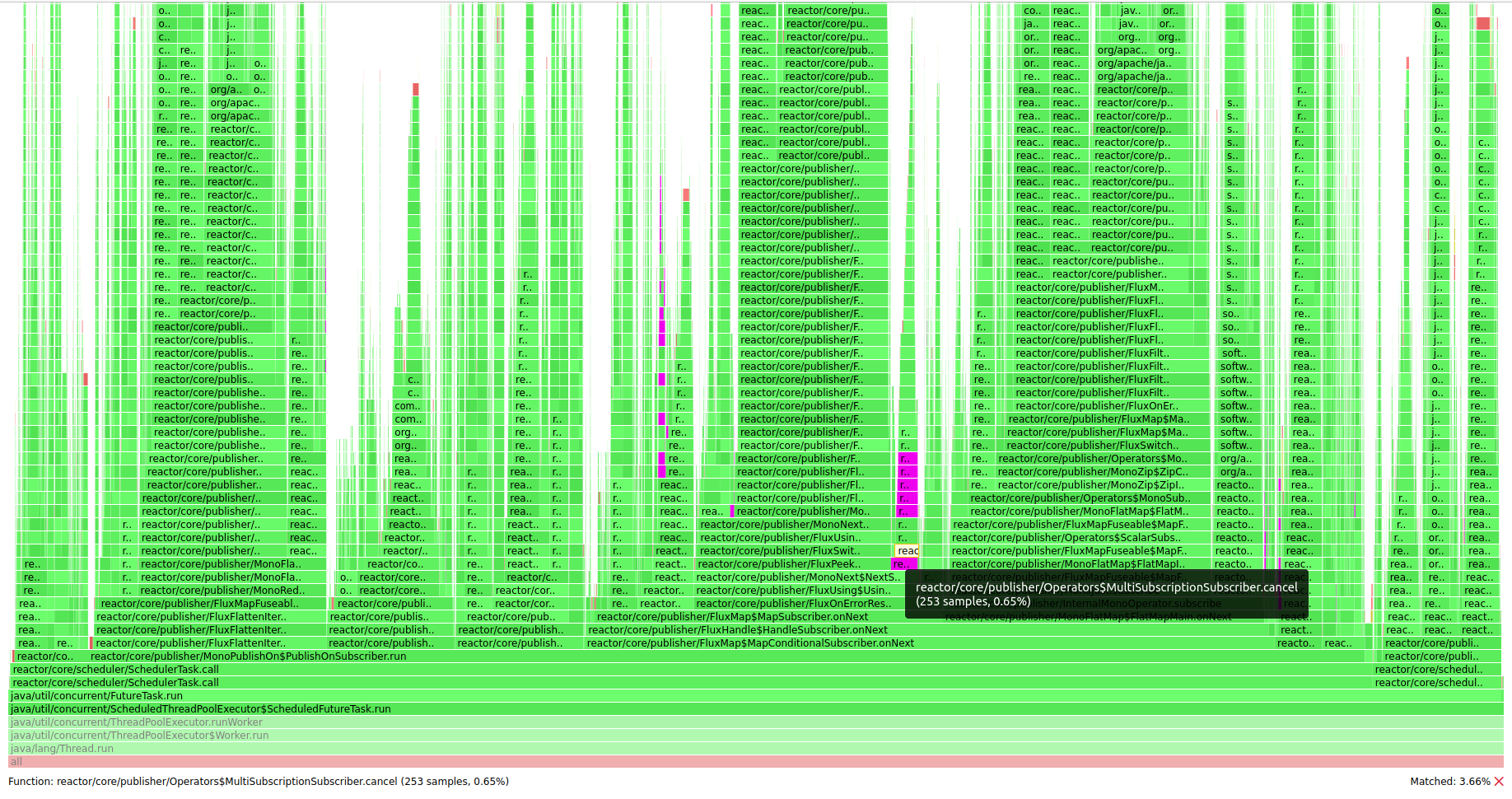 ## Before  A good part of applicative CPU is used calling cancels on fluxes to get back a mono. Zoom:  Here is the associated gatling result:  ## After Most of the cancels are gone (remains the ones of the authentication strategy)  Which translates with better gating perfs (~10% mean time and ~7% p99 decrease, ~0.5% throughput increase) -- This is an automated message from the Apache Git Service. To respond to the message, please log on to GitHub and use the URL above to go to the specific comment. To unsubscribe, e-mail: [email protected] For queries about this service, please contact Infrastructure at: [email protected] --------------------------------------------------------------------- To unsubscribe, e-mail: [email protected] For additional commands, e-mail: [email protected]