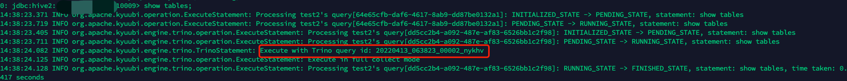 Output trino query id for debug.