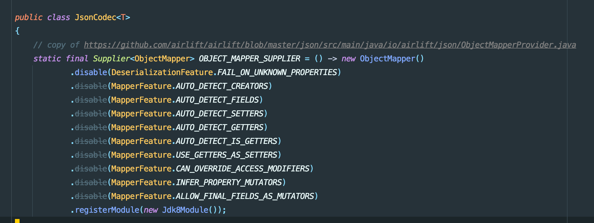 private lazy val mapper = new ObjectMapper()