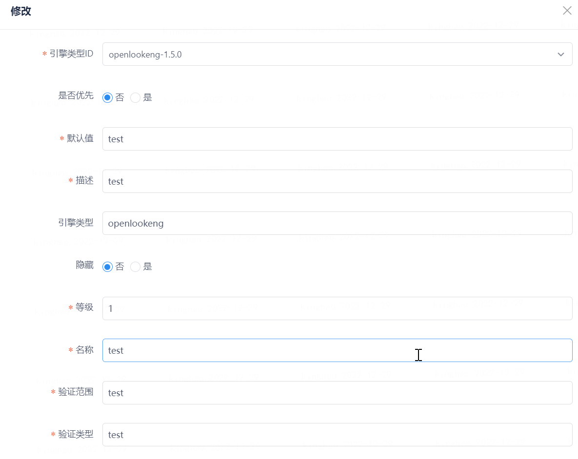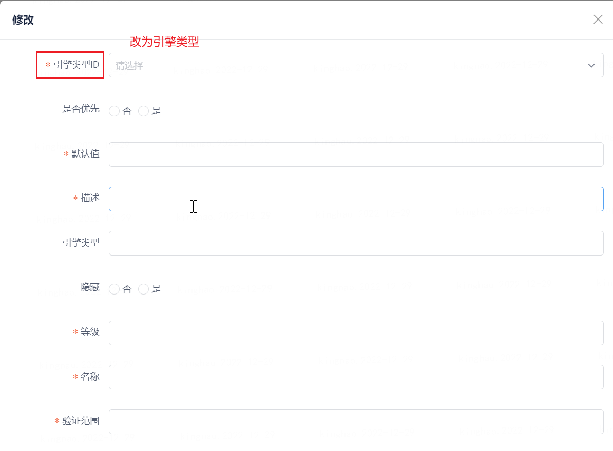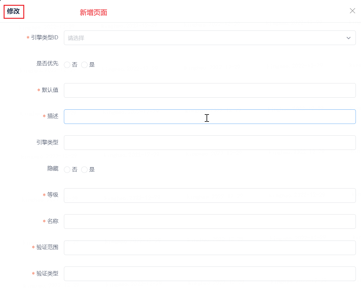 ### Search before asking - [X] I searched the [issues](https://github.com/apache/incubator-linkis/issues) and found no similar issues. ### Linkis Component linkis-web ### Steps to reproduce 一、页面显示调整 1.修改显示顺序 名称 键值 默认值 引擎类型 验证范围 验证类型 描述 操作  2.建议隐藏列(增加显示详情按钮,点击后显示全部) 隐藏列:是否优先 隐藏 等级 树名称  3.引擎类型列未显示数据  4.左侧引擎类型列表建议增加一列,用于区分引擎是否安装  5.新增页面,引擎类型ID 改为 引擎类型  6.新增页面,调整表单顺序:引擎类型 名称 键值(这个目前未显示) 默认值 描述 是否优先 隐藏 等级 验证范围 验证类型 树名称  二、页面bug 1.点击新增,弹框页面显示的是"修改"  2.新增键值失败   3.编辑失败   ### Expected behavior 正确显示 ### Your environment linkis-web ### Anything else _No response_ ### Are you willing to submit a PR? - [ ] Yes I am willing to submit a PR! -- This is an automated message from the Apache Git Service. To respond to the message, please log on to GitHub and use the URL above to go to the specific comment. To unsubscribe, e-mail: [email protected] For queries about this service, please contact Infrastructure at: [email protected] --------------------------------------------------------------------- To unsubscribe, e-mail: [email protected] For additional commands, e-mail: [email protected]