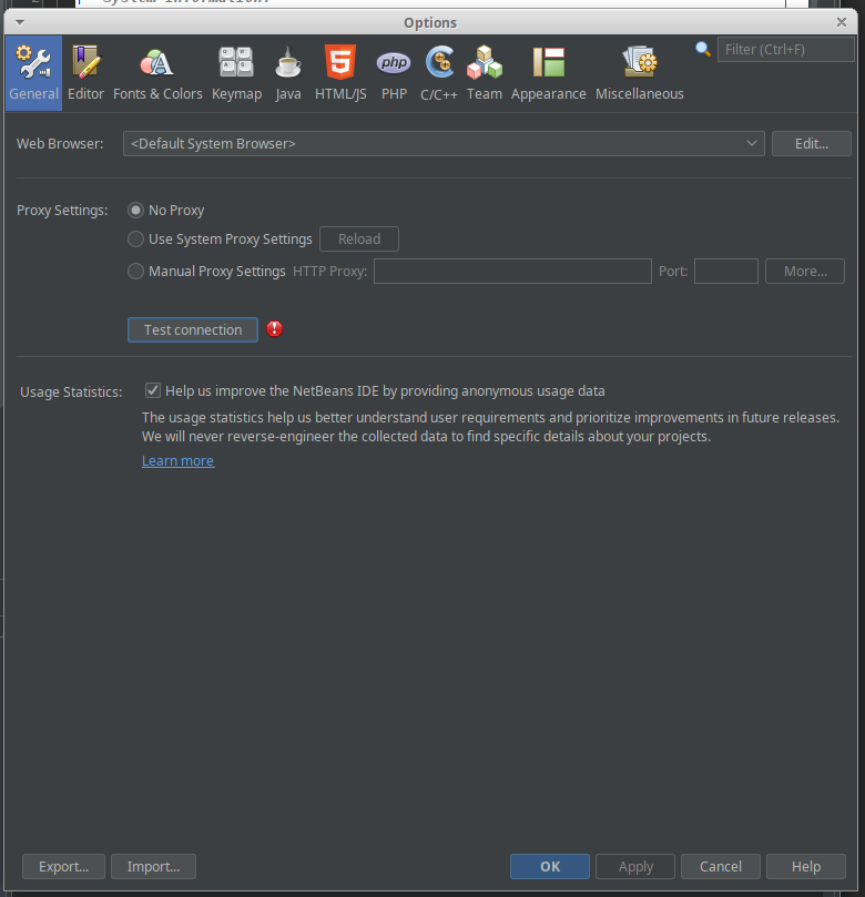 If you are testing the connection in the settings it fails with `Connection failed (null)` despite setting the option to _No Proxy_ The method responsible for only checks for `HTTP OK (200)` and `HTTP MOVED TEMPORARILY (302)` despite http://netbeans.org (`ProxySettings.HTTP_CONNECTION_TEST_URL`) responding back `HTTP MOVED PERMANENTLY 301`.  -- This is an automated message from the Apache Git Service. To respond to the message, please log on to GitHub and use the URL above to go to the specific comment. To unsubscribe, e-mail: [email protected] For queries about this service, please contact Infrastructure at: [email protected] --------------------------------------------------------------------- To unsubscribe, e-mail: [email protected] For additional commands, e-mail: [email protected] For further information about the NetBeans mailing lists, visit: https://cwiki.apache.org/confluence/display/NETBEANS/Mailing+lists