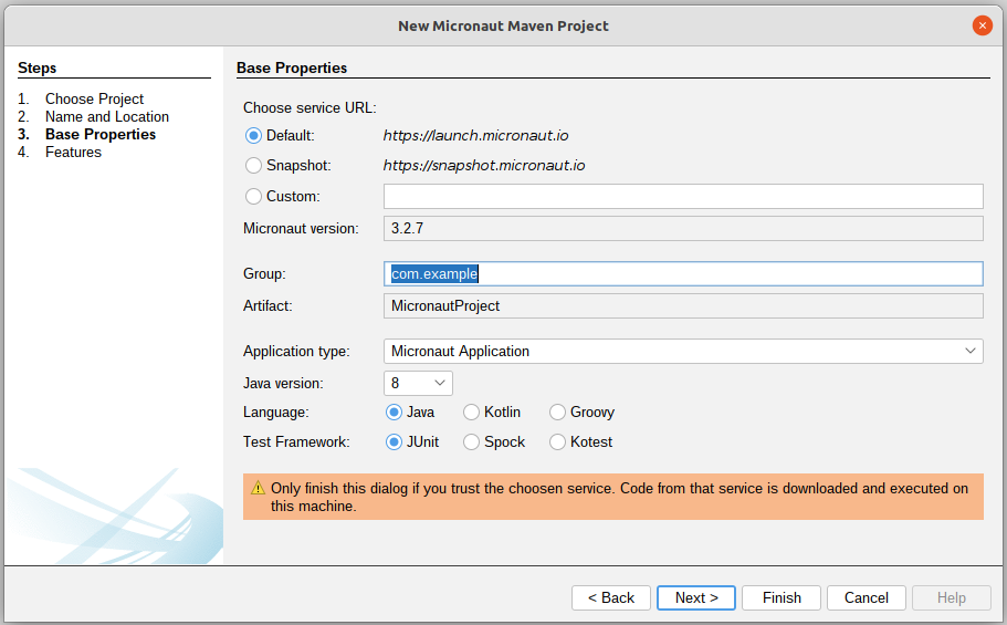 Micronaut projects are generated by the https://micronaut.io/launch/ service, which creates a ZIP file with the project contents. The NetBeans integration unzips that file and invokes the gradle/maven build. Micronaut uses either the maven or gradle wrappers and on unixoid systems this wrapper needs to be executable. This is fixed in 9de1d4b. In addition the user is informed, that he should be careful to trust the system used to generate the project file:  -- This is an automated message from the Apache Git Service. To respond to the message, please log on to GitHub and use the URL above to go to the specific comment. To unsubscribe, e-mail: [email protected] For queries about this service, please contact Infrastructure at: [email protected] --------------------------------------------------------------------- To unsubscribe, e-mail: [email protected] For additional commands, e-mail: [email protected] For further information about the NetBeans mailing lists, visit: https://cwiki.apache.org/confluence/display/NETBEANS/Mailing+lists