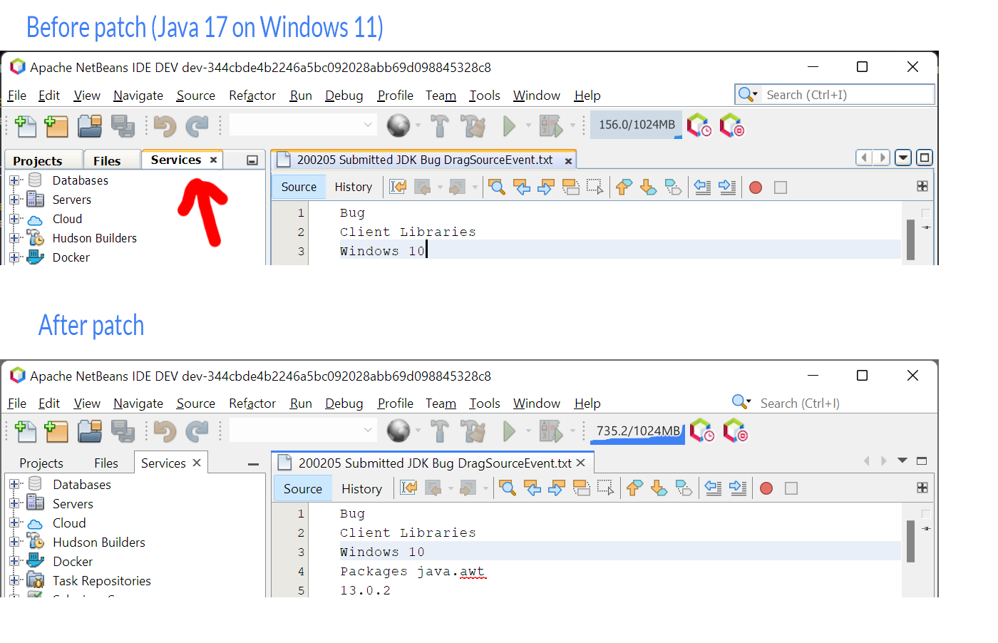 When running NetBeans with the Windows LAF on Windows 11 and Java 17, parts of the LAF revert to an older look. See screenshot below. This is due to the "os.name" system property being checked for the value "Windows 10" in various places. With Java 17 and Windows 11, this property can now have the value "Windows 11". This PR goes through each occurrence of "Windows 10" and also permits "Windows 11" in these cases.  -- This is an automated message from the Apache Git Service. To respond to the message, please log on to GitHub and use the URL above to go to the specific comment. To unsubscribe, e-mail: [email protected] For queries about this service, please contact Infrastructure at: [email protected] --------------------------------------------------------------------- To unsubscribe, e-mail: [email protected] For additional commands, e-mail: [email protected] For further information about the NetBeans mailing lists, visit: https://cwiki.apache.org/confluence/display/NETBEANS/Mailing+lists
