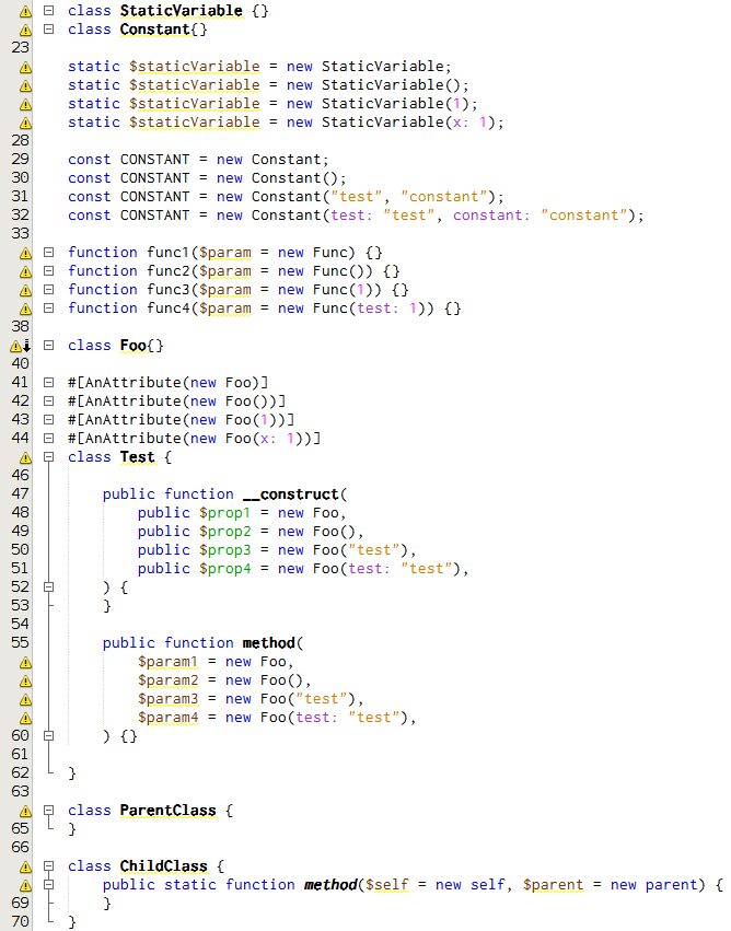 - https://issues.apache.org/jira/browse/NETBEANS-5599 - RFC:https://wiki.php.net/rfc/new_in_initializers - Fix PHP81UnhandledError #### Screenshots PHP 8.1  PHP 8.0  -- This is an automated message from the Apache Git Service. To respond to the message, please log on to GitHub and use the URL above to go to the specific comment. To unsubscribe, e-mail: [email protected] For queries about this service, please contact Infrastructure at: [email protected] --------------------------------------------------------------------- To unsubscribe, e-mail: [email protected] For additional commands, e-mail: [email protected] For further information about the NetBeans mailing lists, visit: https://cwiki.apache.org/confluence/display/NETBEANS/Mailing+lists