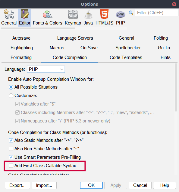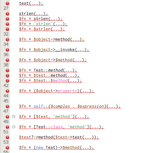 - https://issues.apache.org/jira/browse/NETBEANS-5599 - https://wiki.php.net/rfc/first_class_callable_syntax #### Part 1 - Fix the parser - Fix `PHP81UnhandledError` - Add unit tests PHP 8.1  PHP 8.0  #### Part 2 - Fix the formatter - Add unit tests #### Part 3 - Fix the GotoDeclaration and MarkOccurences - Add unit tests #### Part 4 - Add the HintError to check incorrect first-class callable syntax - Add unit tests  #### Part 5 - Fix the code completion - Don't add callable(...) cc items by default - Add unit tests   -- This is an automated message from the Apache Git Service. To respond to the message, please log on to GitHub and use the URL above to go to the specific comment. To unsubscribe, e-mail: [email protected] For queries about this service, please contact Infrastructure at: [email protected] --------------------------------------------------------------------- To unsubscribe, e-mail: [email protected] For additional commands, e-mail: [email protected] For further information about the NetBeans mailing lists, visit: https://cwiki.apache.org/confluence/display/NETBEANS/Mailing+lists
