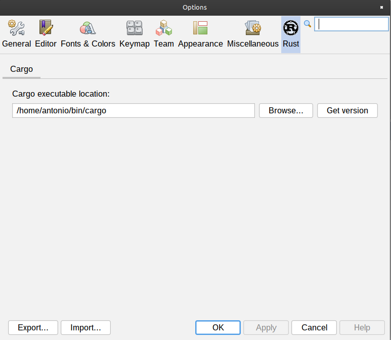 > `~/.cargo` is empty though. OS is manjaro linux. It's a bit like arch. > > Did you reset your netbeans conf folder before testing the new build again? (I did) The `Find in path` button is no more (i.e. we don't search in $PATH, just in $HOME/.cargo/bin). You now have to select the `cargo` executable using the "Browse" button. Have you tried that?  -- This is an automated message from the Apache Git Service. To respond to the message, please log on to GitHub and use the URL above to go to the specific comment. To unsubscribe, e-mail: [email protected] For queries about this service, please contact Infrastructure at: [email protected] --------------------------------------------------------------------- To unsubscribe, e-mail: [email protected] For additional commands, e-mail: [email protected] For further information about the NetBeans mailing lists, visit: https://cwiki.apache.org/confluence/display/NETBEANS/Mailing+lists