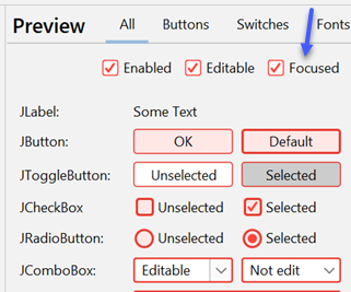 BTW we can of course use other predefined accent colors. Maybe some from the Windows 11 accent colors. Suggestions are welcome.  To try various accent colors I recommend using [FlatLaf Theme Editor](https://www.formdev.com/flatlaf/theme-editor/) because it has **live preview** and a **color picker**: To do so, create/open an empty directory in theme editor, create two properties files, one for light and one for dark, and add following: ~~~ @accentColor = #FF453A ~~~ Theme Editor preview now looks like this:  Select "Focused" checkbox to show all preview components in focused state. -- This is an automated message from the Apache Git Service. To respond to the message, please log on to GitHub and use the URL above to go to the specific comment. To unsubscribe, e-mail: [email protected] For queries about this service, please contact Infrastructure at: [email protected] --------------------------------------------------------------------- To unsubscribe, e-mail: [email protected] For additional commands, e-mail: [email protected] For further information about the NetBeans mailing lists, visit: https://cwiki.apache.org/confluence/display/NETBEANS/Mailing+lists