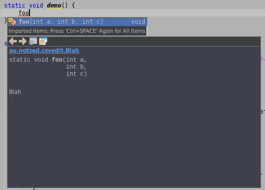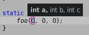 I then hit [return] to select the function I want (i.e. foo(a,b,c)):