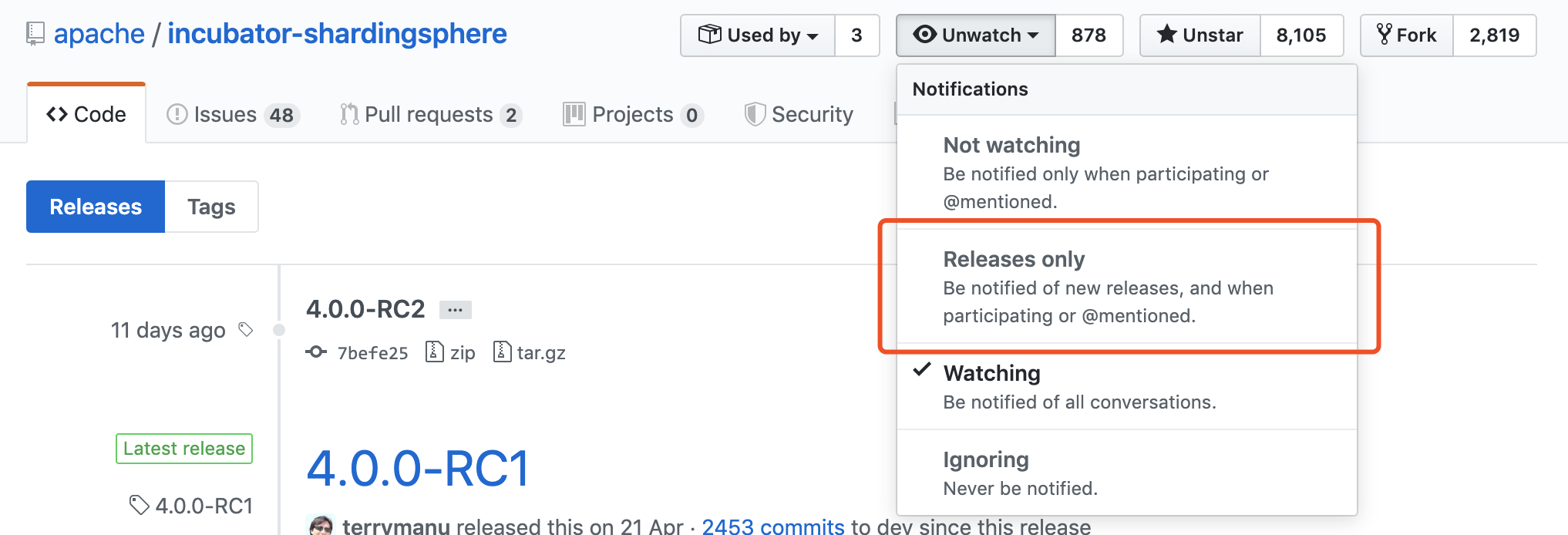 sunbufu commented on issue #2600: why can't we see 4.0.0-RC2 on search.maven.org? URL: https://github.com/apache/incubator-shardingsphere/issues/2600#issuecomment-509060965 > @terrymanu Still could not find 4.0.0-RC2 on search.maven.org Still not release, please focus on [sharding sphere releases](https://github.com/apache/incubator-shardingsphere/releases), or watch sharding sphere on gitlab.
