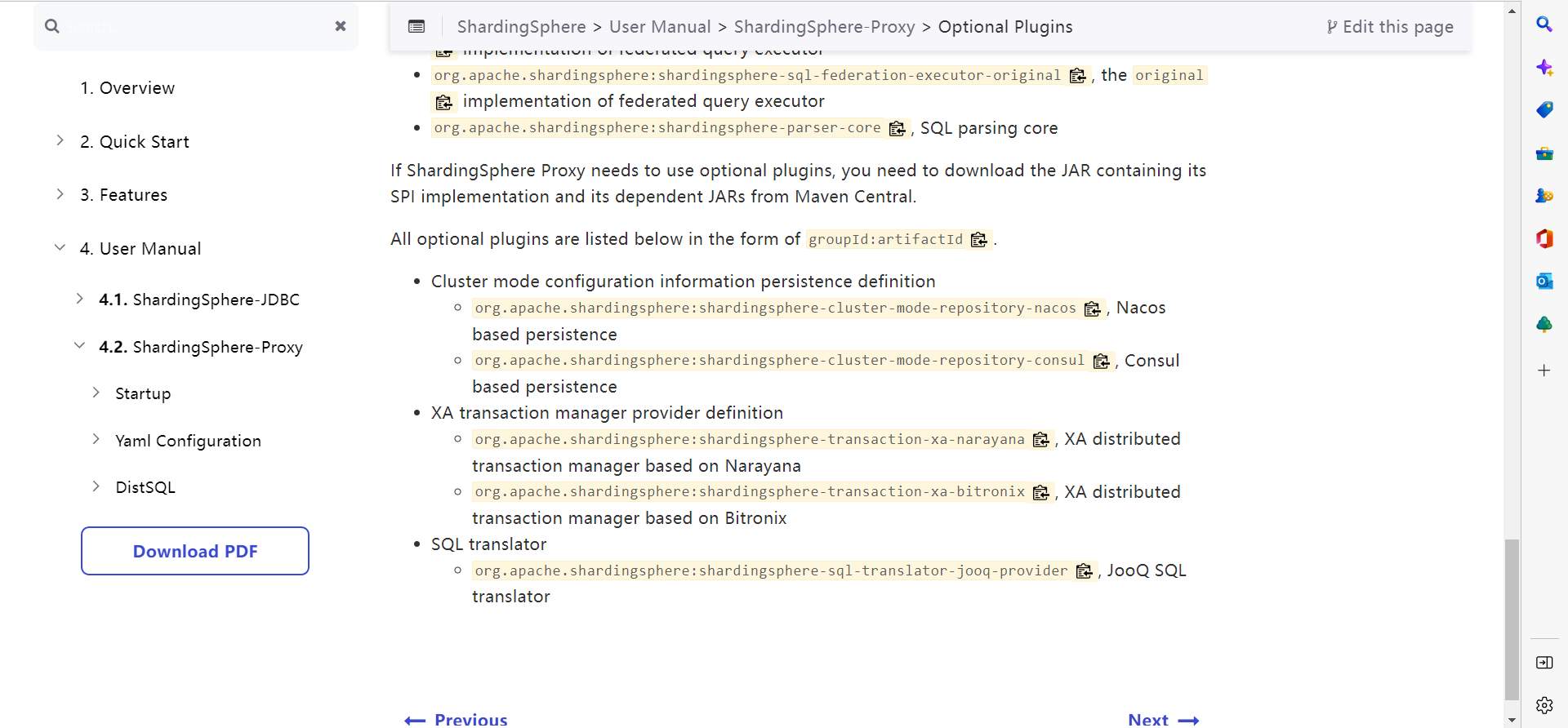 - I marked the GAV information of these dependencies in https://shardingsphere.apache.org/document/current/en/user-manual/shardingsphere-proxy/optional-plugins/ before, do I need to move the page? -  -- This is an automated message from the Apache Git Service. To respond to the message, please log on to GitHub and use the URL above to go to the specific comment. To unsubscribe, e-mail: [email protected] For queries about this service, please contact Infrastructure at: [email protected]