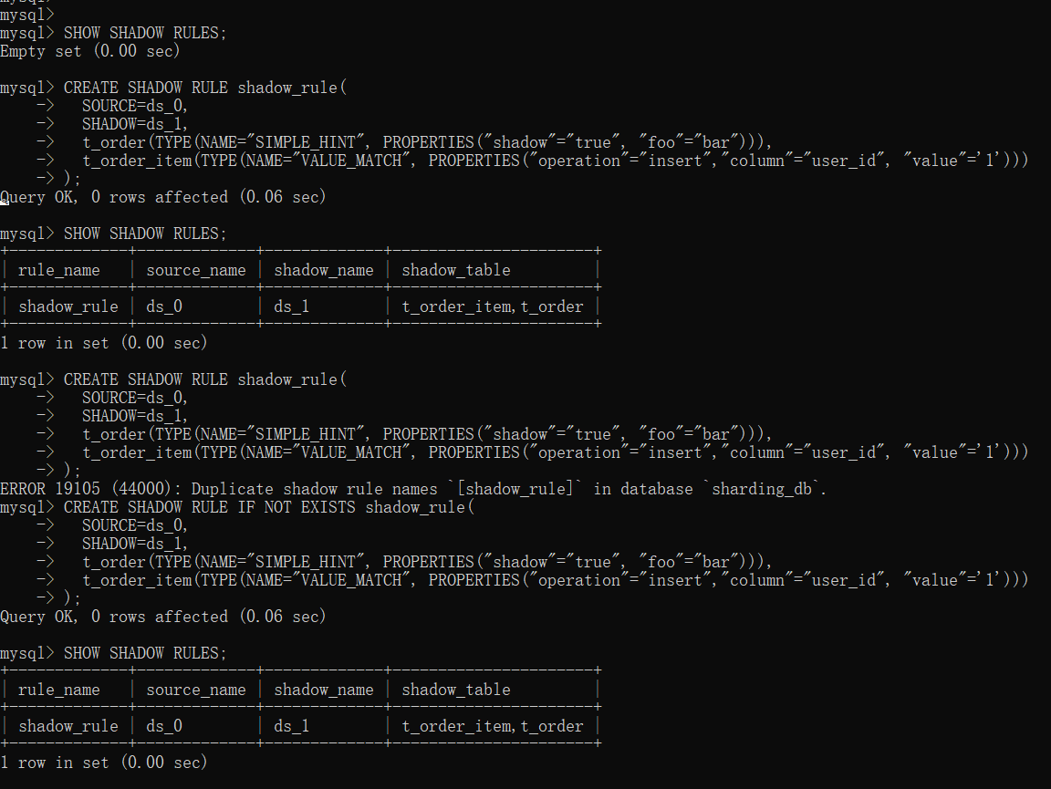 For #22484 , add IF NOT EXISTS to CREATE SHADOW RULE.  --- Before committing this PR, I'm sure that I have checked the following options: - [ ] My code follows the [code of conduct](https://shardingsphere.apache.org/community/en/involved/conduct/code/) of this project. - [ ] I have self-reviewed the commit code. - [ ] I have (or in comment I request) added corresponding labels for the pull request. - [ ] I have passed maven check locally : `./mvnw clean install -B -T1C -Dmaven.javadoc.skip -Dmaven.jacoco.skip -e`. - [ ] I have made corresponding changes to the documentation. - [ ] I have added corresponding unit tests for my changes. -- This is an automated message from the Apache Git Service. To respond to the message, please log on to GitHub and use the URL above to go to the specific comment. To unsubscribe, e-mail: [email protected] For queries about this service, please contact Infrastructure at: [email protected]
