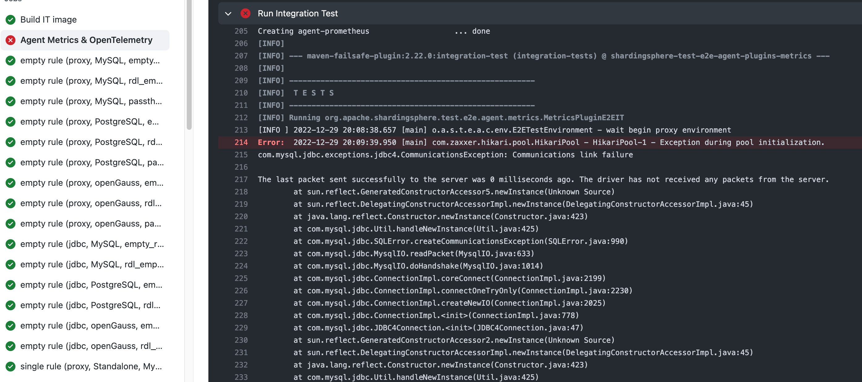 ## Bug Report **For English only**, other languages will not accept. Before report a bug, make sure you have: - Searched open and closed [GitHub issues](https://github.com/apache/shardingsphere/issues). - Read documentation: [ShardingSphere Doc](https://shardingsphere.apache.org/document/current/en/overview). Please pay attention on issues you submitted, because we maybe need more details. If no response anymore and we cannot reproduce it on current information, we will **close it**. Please answer these questions before submitting your issue. Thanks! ### Which version of ShardingSphere did you use? ### Which project did you use? ShardingSphere-JDBC or ShardingSphere-Proxy? Proxy ### Expected behavior test success ### Actual behavior test fail  ### Reason analyze (If you can) ### Steps to reproduce the behavior, such as: SQL to execute, sharding rule configuration, when exception occur etc. ### Example codes for reproduce this issue (such as a github link). -- This is an automated message from the Apache Git Service. To respond to the message, please log on to GitHub and use the URL above to go to the specific comment. To unsubscribe, e-mail: [email protected] For queries about this service, please contact Infrastructure at: [email protected]