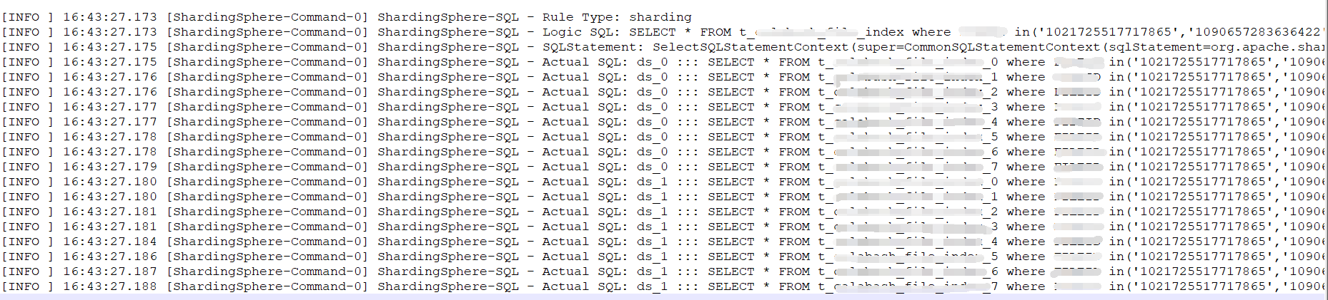 When using “in” query, and the parameters have thousands of “ID”, the query speed will be very slow. Use "_+partitioned " query speed is normal. Here are some configuration data and troubleshooting data. config  query sharding log  testing environment 1.using sharding、50w data、sql:select * from table where column in (...)、condition have index, not shardingid. query time 15s 2.not used sharding,ditto. query time less 0.2s ---------------------------------------------------------------- This is an automated message from the Apache Git Service. To respond to the message, please log on to GitHub and use the URL above to go to the specific comment. For queries about this service, please contact Infrastructure at: [email protected]